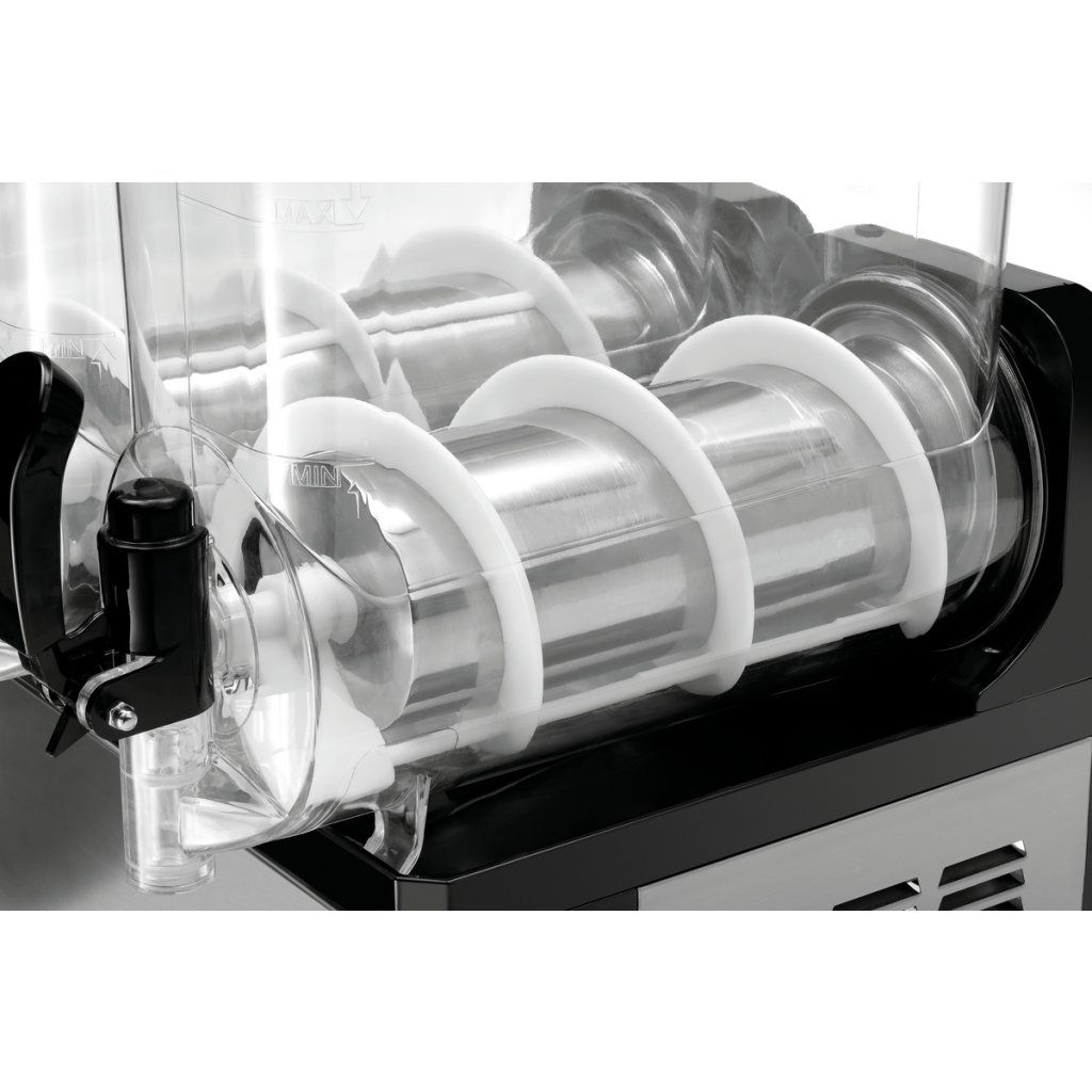 Mražené nápoje mají své místo na trzích, v zábavních parcích, u bazénů i v barech a klubech. Samostatně ovládané osvětlení obou 12litrových nádob pomáhá efektně prezentovat barevné slushie i koktejly.
