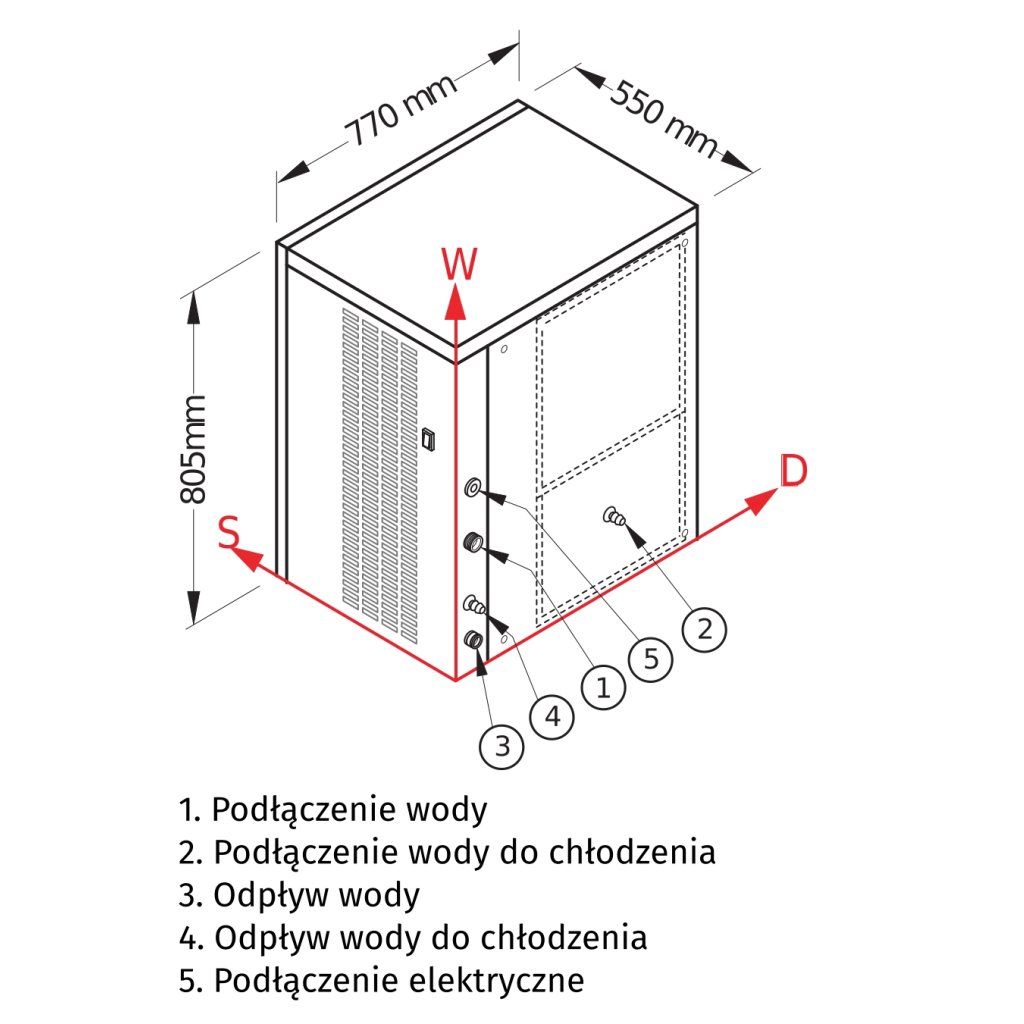 Stroj na výrobu polovičních kostek ledu 200 kg/24 h, vodou chlazený, 1,6 kW, 770x550x805 mm | NTF, CV 475 W