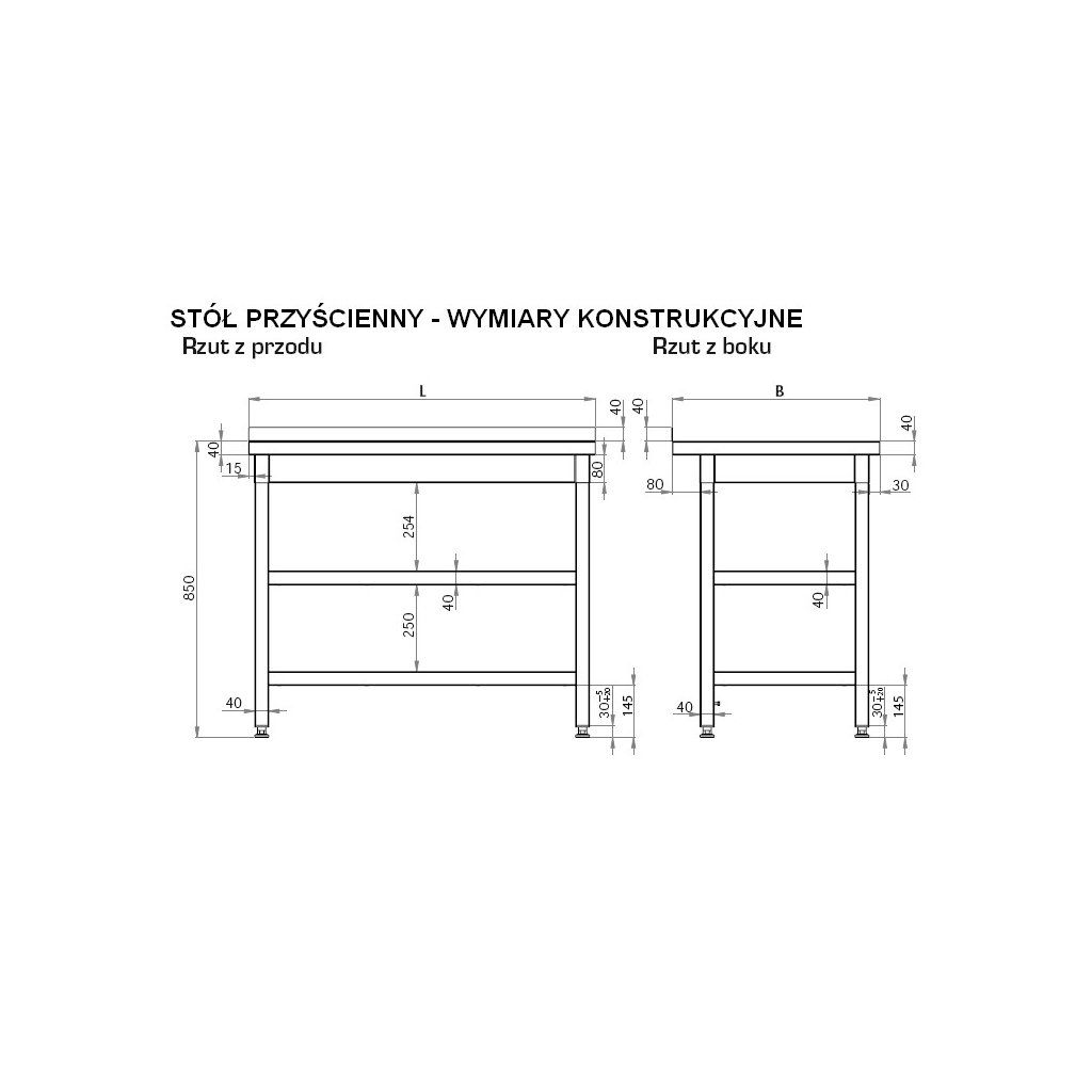 Přístěnný stůl se dvěma policemi 700x700x850 mm vyrobený z vysokojakostní nerezové oceli. Zasíláný v rozložené formě, k samostatné montáži. Nožky a police jsou spojené pomocí šroubů.Doplňkové parametry
