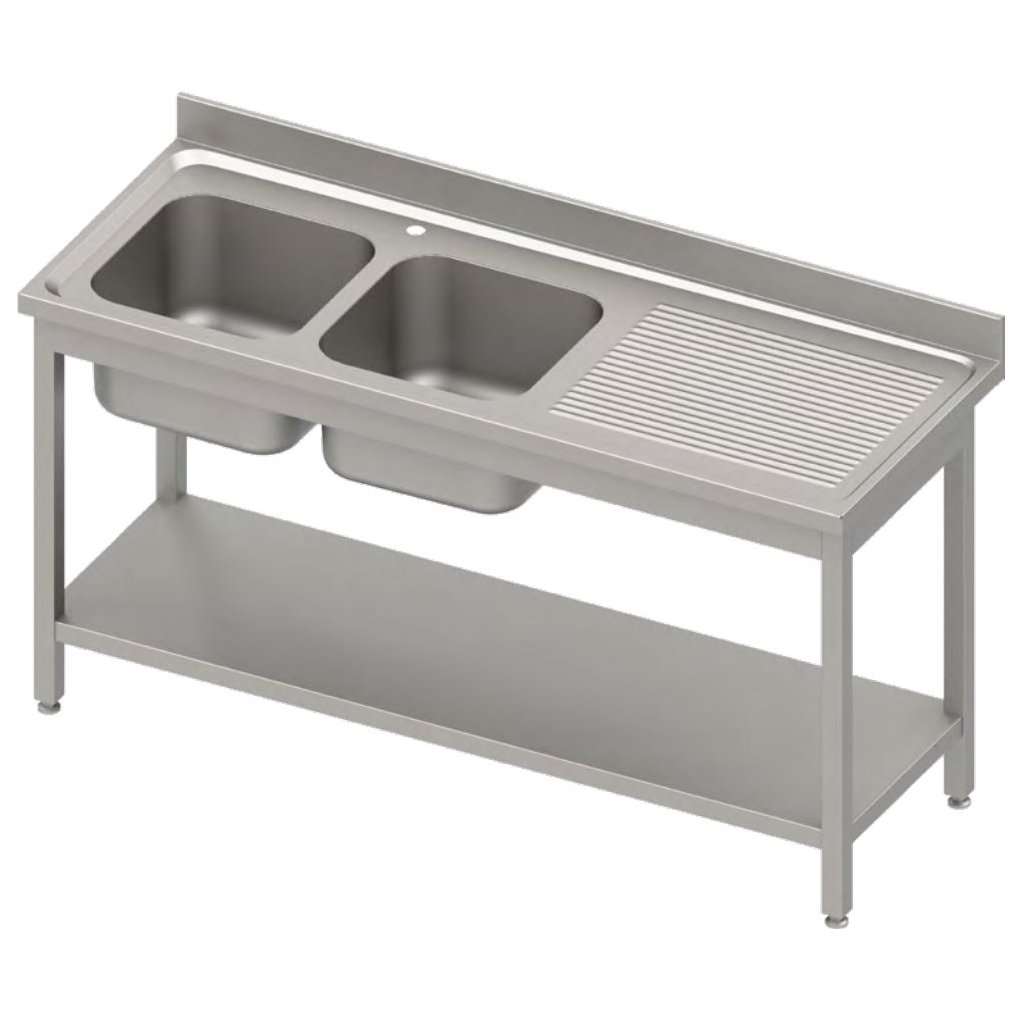 Stůl s dvojitým dřezem na levé straně a policí, 1900x600x850 mm | STALGAST, 984606190