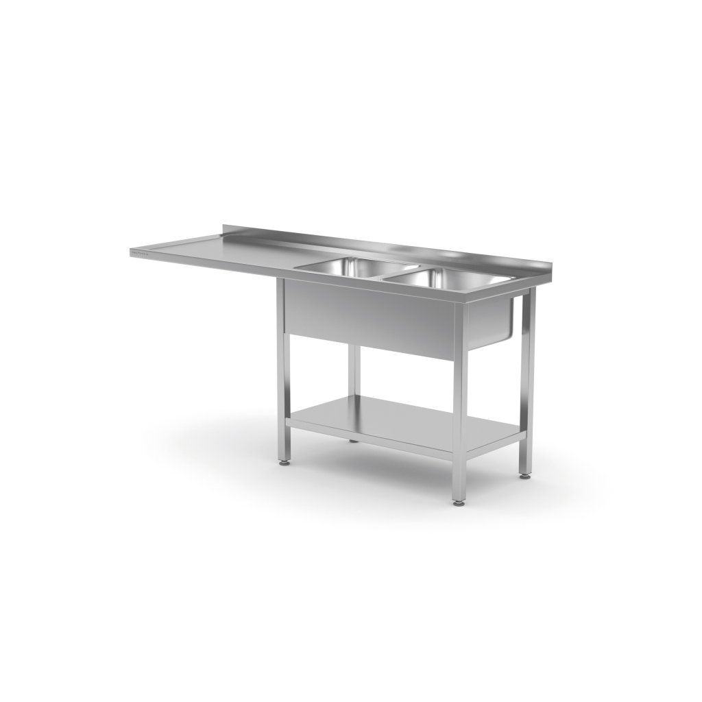 Stůl s dvojitým dřezem na pravé straně a prostorem pro chladničku nebo myčku 1600x600x850 mm | TECHNICA, 242P1660