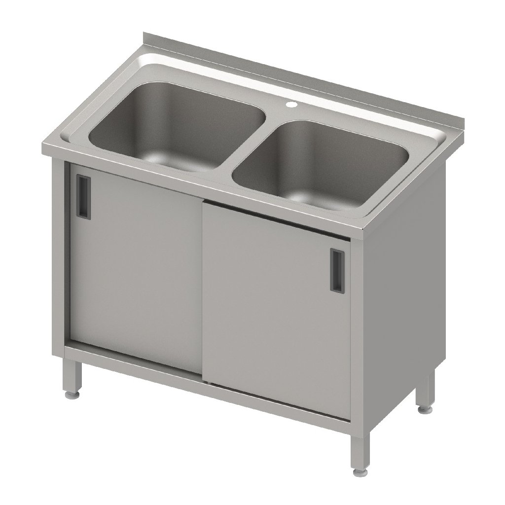 Stůl s dvojitým dřezem s posuvnými dveřmi, 1000x600x850 mm | STALGAST, 616407