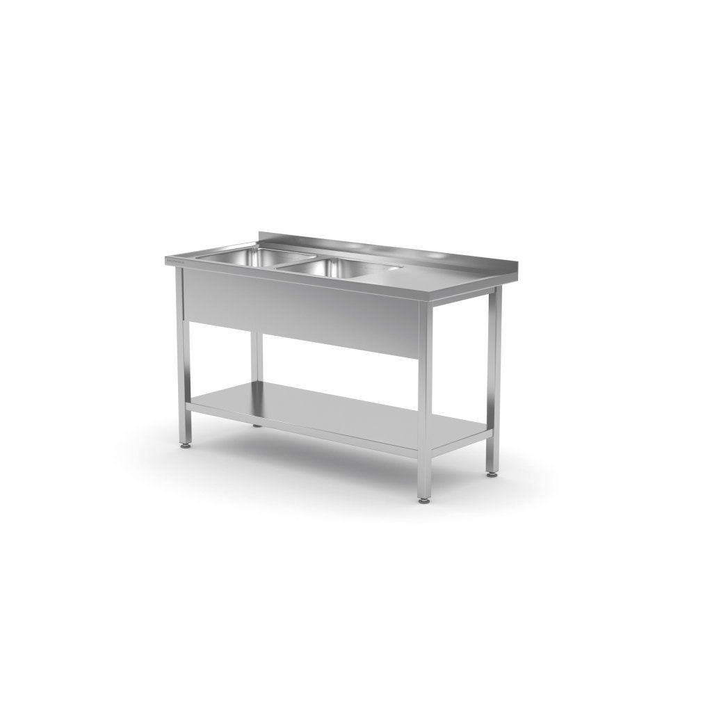 Stůl s dvojitým umyvadlem, levý, s policí 1500x600x850 mm | TECHNICA, 223L1560