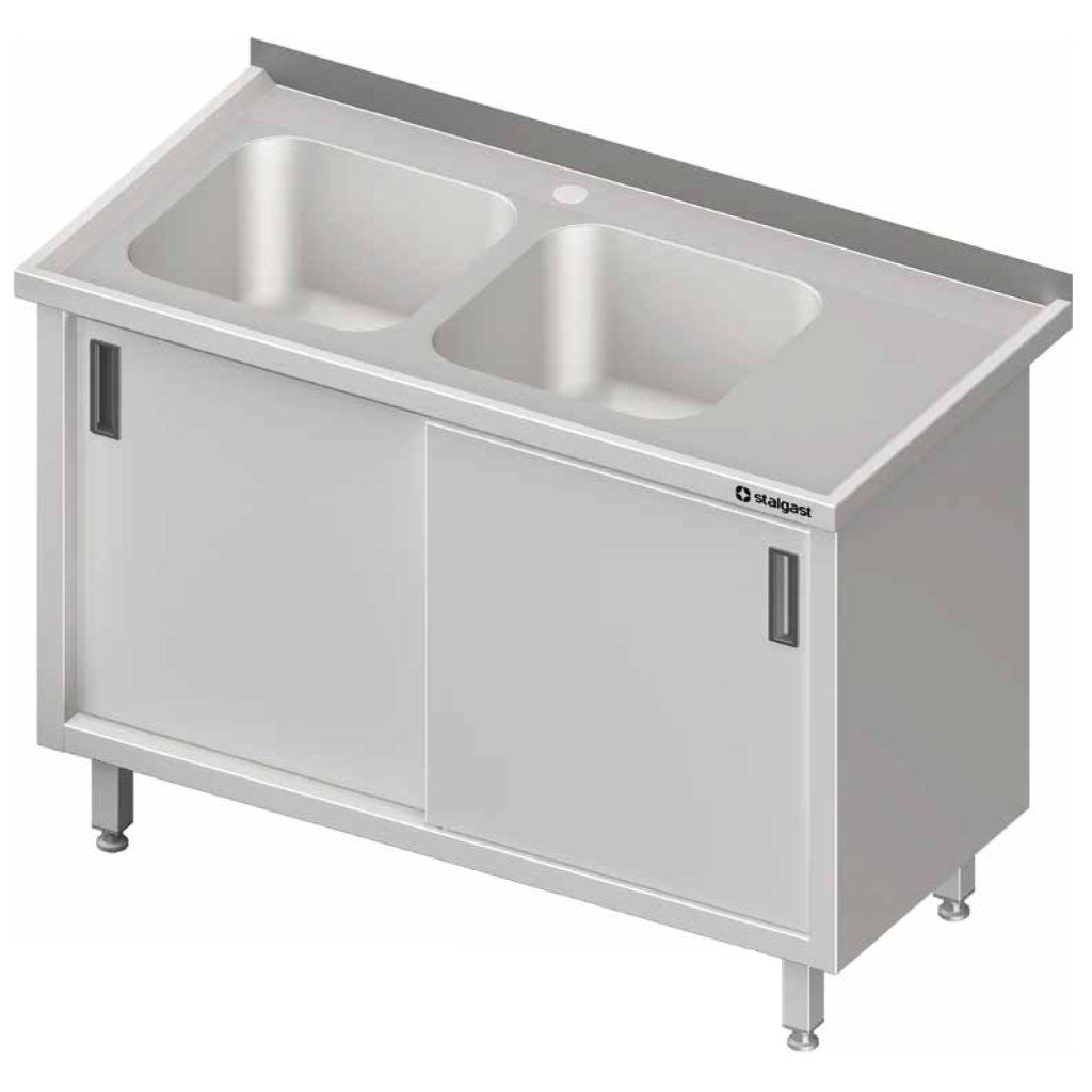 Stůl s dvoukomorovým dřezem po levé straně, posuvné dveře 1300x600x850 mm | STALGAST, 980916130