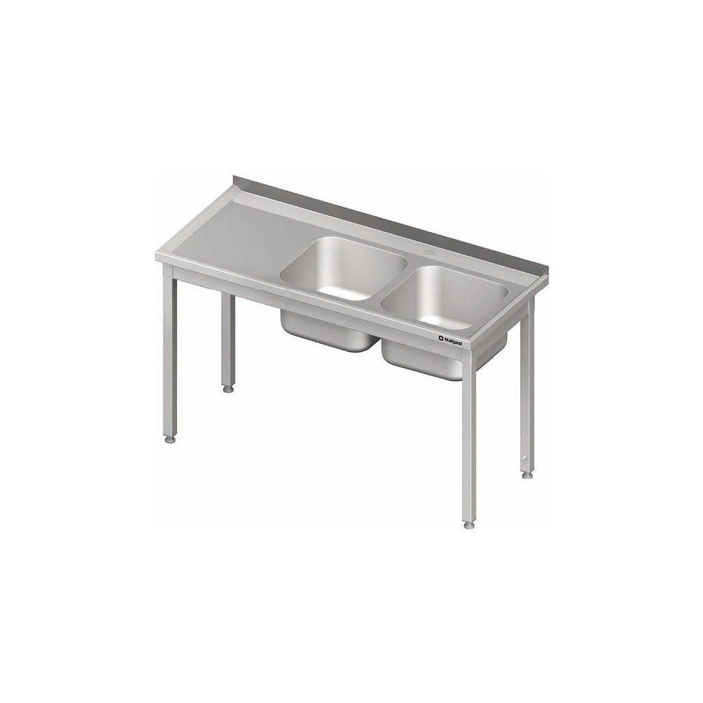 Stůl s dvoukomorovým dřezem po pravé straně bez police 1300x600x850 mm | STALGAST, 980776130