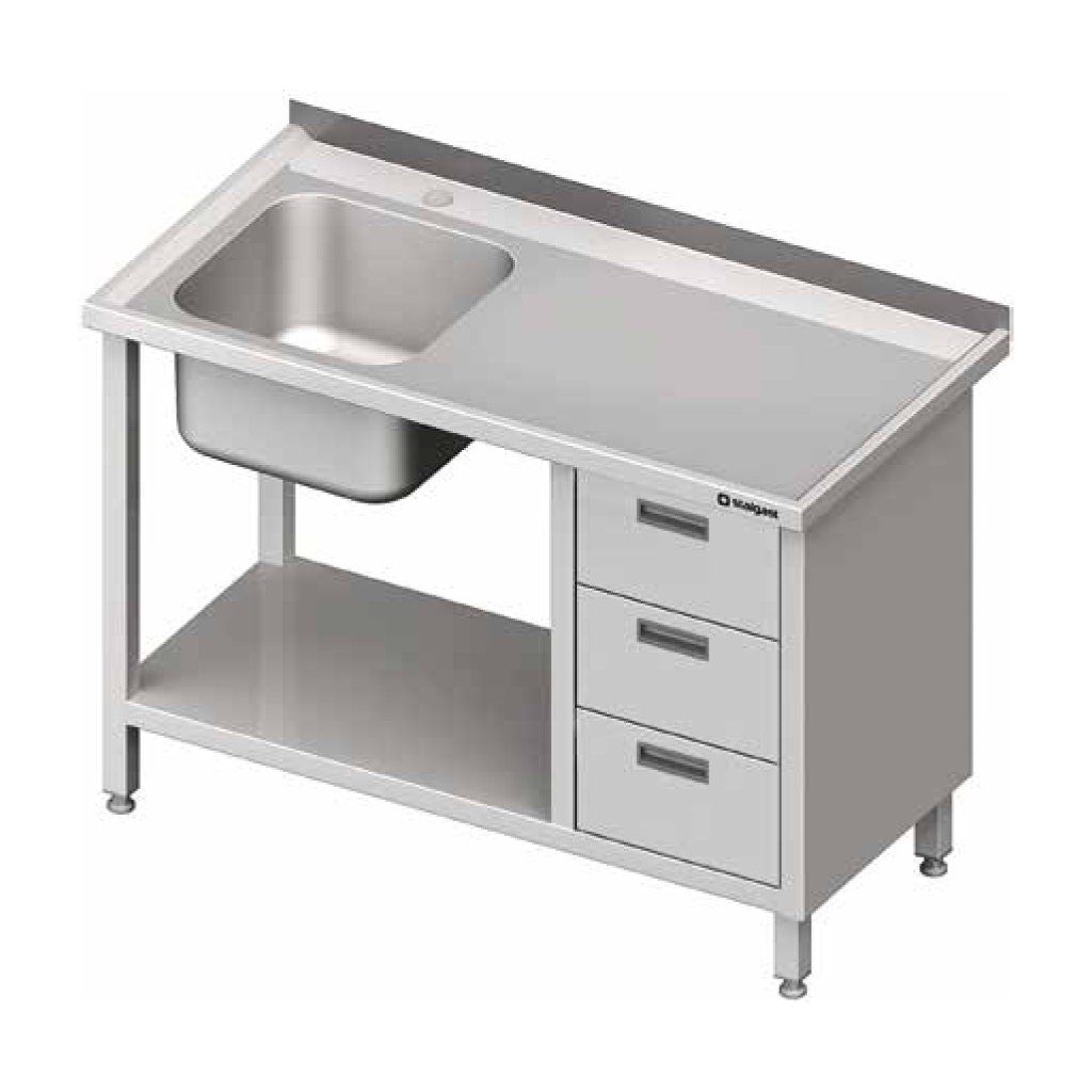 Stůl s jednokomorovým dřezem na levé straně, blokem tří zásuvek a policí 1500x700x850 mm | STALGAST, 982377150