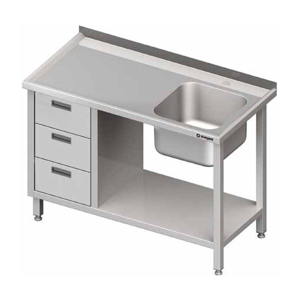 Stůl s jednokomorovým dřezem z pravé strany, s blokem tří zásuvek a policí 1000x700x850 mm | STALGAST, 982367100