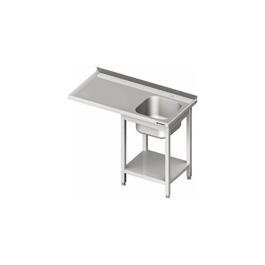 Stůl s jednokomorovým dřezem a místem na ledničku nebo myčku vyrobený z nerezové oceli. Zasílán v rozebraném stavu – pro samostatnou montáž. Nohy a police spojovány pomocí šroubů. Otvor pro baterii o průměru 33 mm (zaslepený) na středu komory. Komora o rozměrech 400x500x250 mm z pravé strany. Možnost tvorby otvoru pro drtič odpadů o průměru 90 mm.Doplňkové parametry