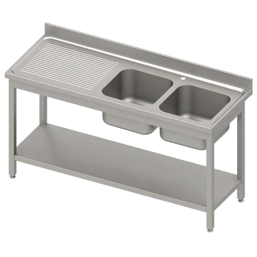 Stůl s pravým dvojitým dřezem a policí, 1300x700x850 mm | STALGAST, 984597130