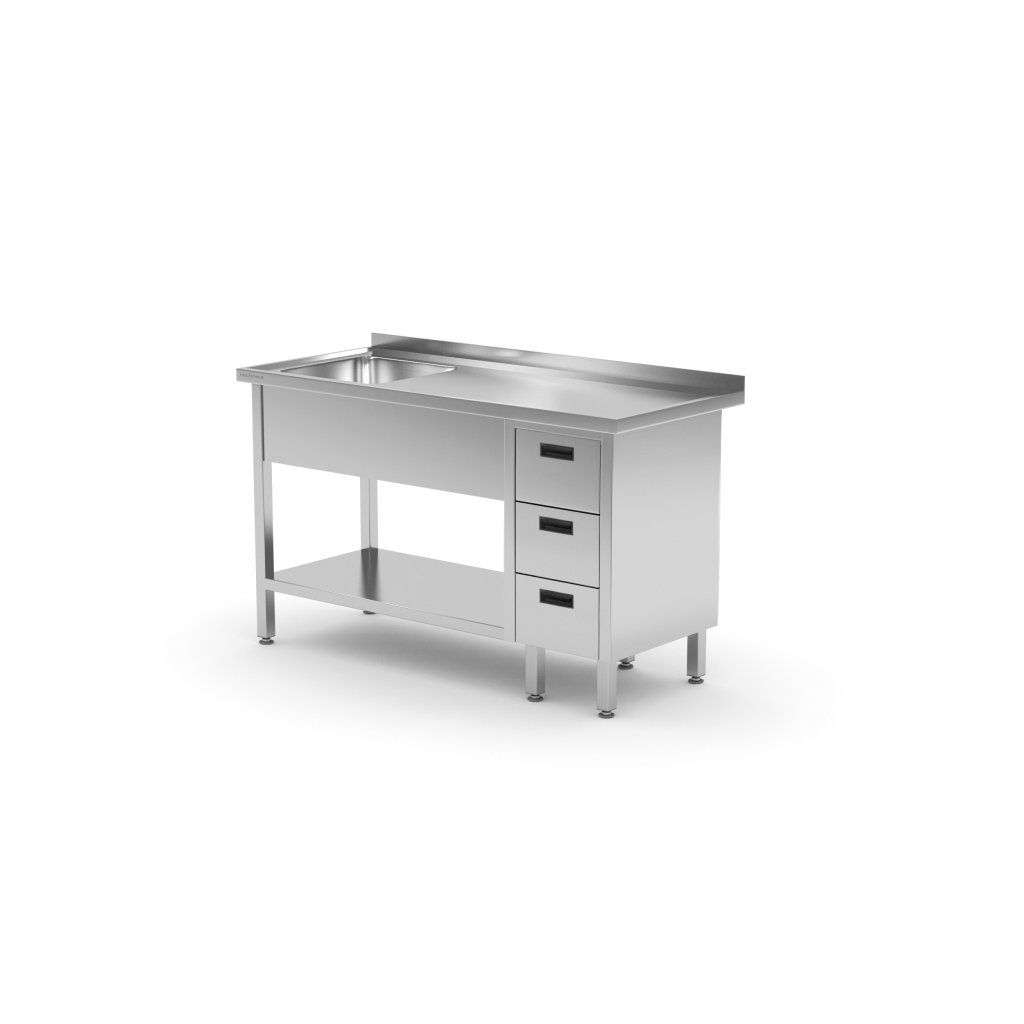 Stůl s umyvadlem s jednou mísou na levé straně se třemi zásuvkami a policí 1200x600x850 mm | TECHNICA, 2163L1260