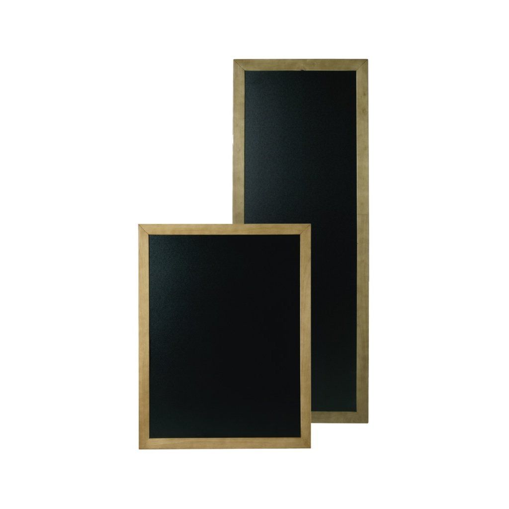 Tabule z černého PVC v rámu z třikrát lakovaného bukového dřeva v barvě teak. Jedoduchá na údržbu. Možnost zavěšení na stěně nebo stojanu. Možno použít i venku. Psaní křídou nebo fixou na bázi vody.Doplňkové parametry