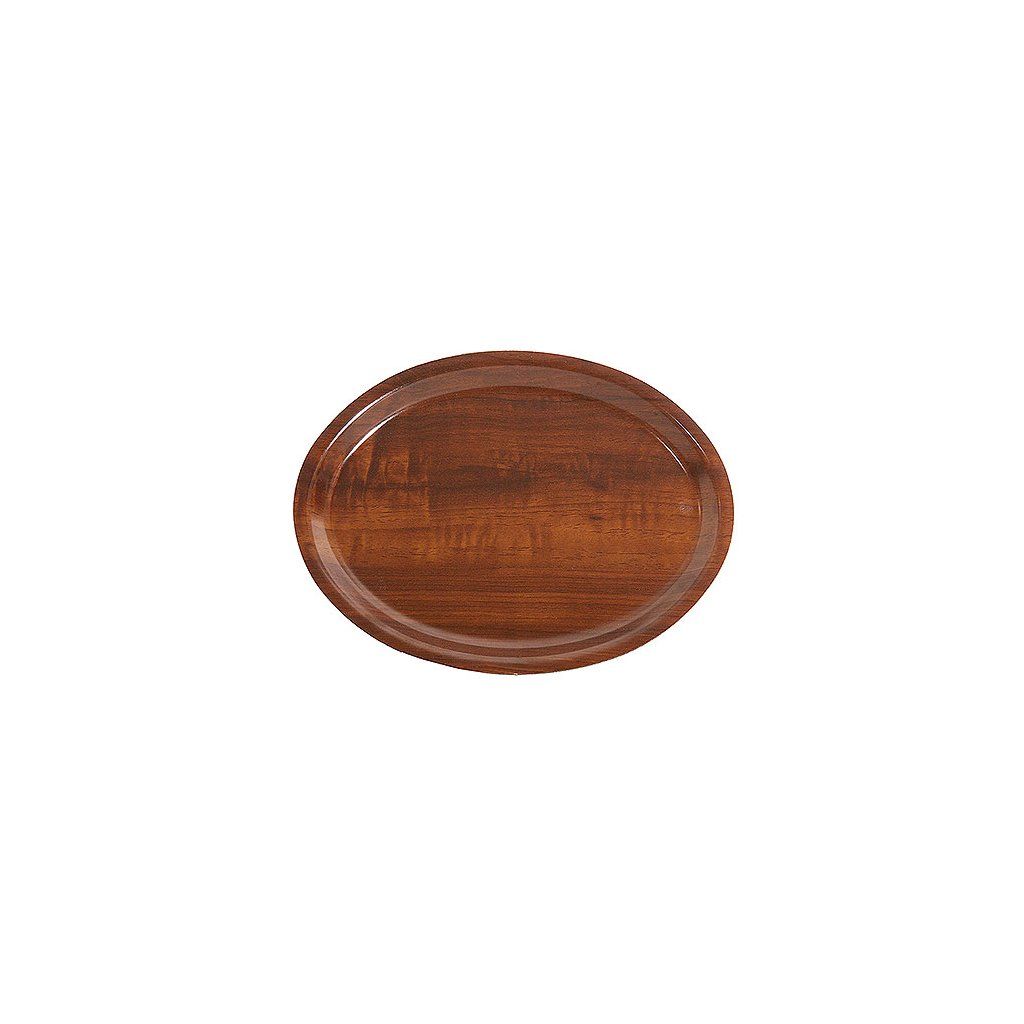 Oválný tác ze dřeva pokrytého melaminem v ořechové barvě. Odolný proti alkoholu a kyselému prostředí. Vhodný do myčky. Teplotní odolnost od -10° do +100° Celsia.Doplňkové parametry