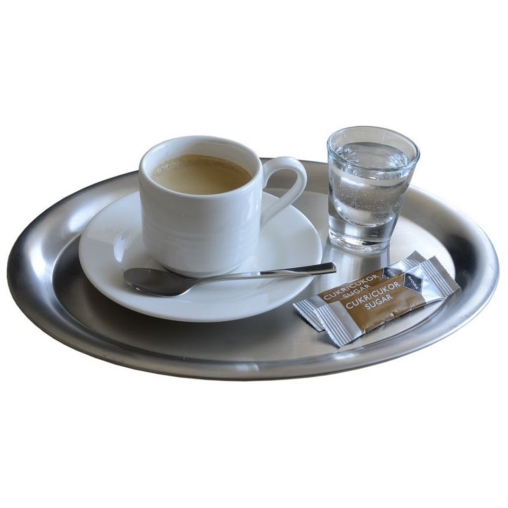 Nerezový tácek se svými rozměry ideálně hodí pro servírování kávy i čaje doplněných o další nezbytné pochutiny, jako je voda, cukr a sušenka. Vyrábí se z prvotřídní nerezové oceli určené pro potravinářské účely a lze ho mýt i v myčce na nádobí.Tác na servírování kávy
