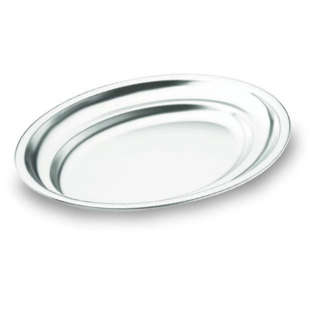 Oválný tác vyrobený z nerezové oceli se skvěle hodí do různých bufetů, rautů či na nějaké události. Skvěle na něm vyniknou jednohubky či chlebíčky. Vyrábí se z prvotřídní nerezové oceli určené pro potravinářské účely a lze ho mýt i v myčce na nádobí.Tác oválný 50 × 35 cm