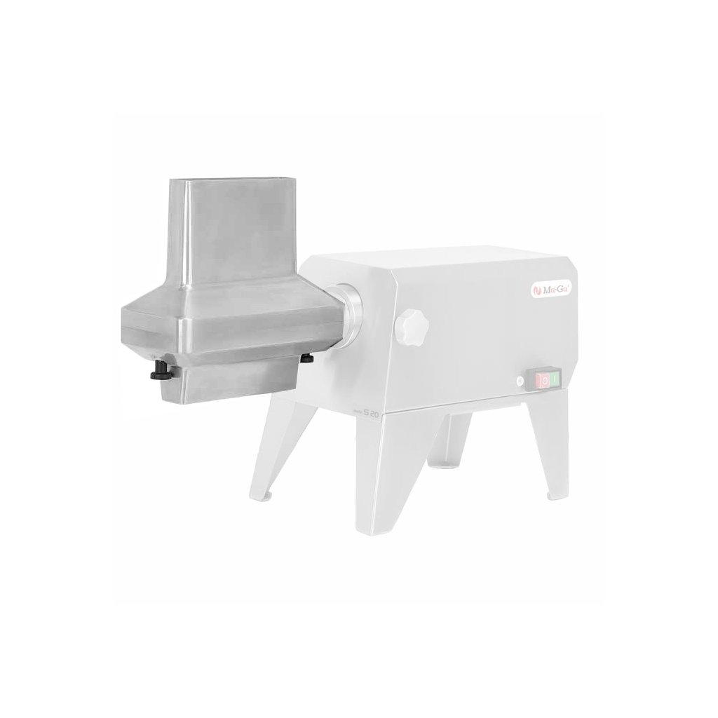Tenderizer na maso (steaker), nadstavec S20 je profesionální zařízení na nařezávání a změkčování masa.Používá se v obchodech, ve stravovacích zařízeních, v gastronomických provozech a potravinářském průmyslu, stejně jako v cateringu.• Vysoko umístěný vstupní otvor zabraňuje dotyku otáčejících se nožů• Leštěný kryt usnadňuje čištění.• Díky správné výšce výstupu je možné používat gastro nádobyIlustrační foto. Sada obsahuje pouze modul bez pohonu.Doplňkové parametry