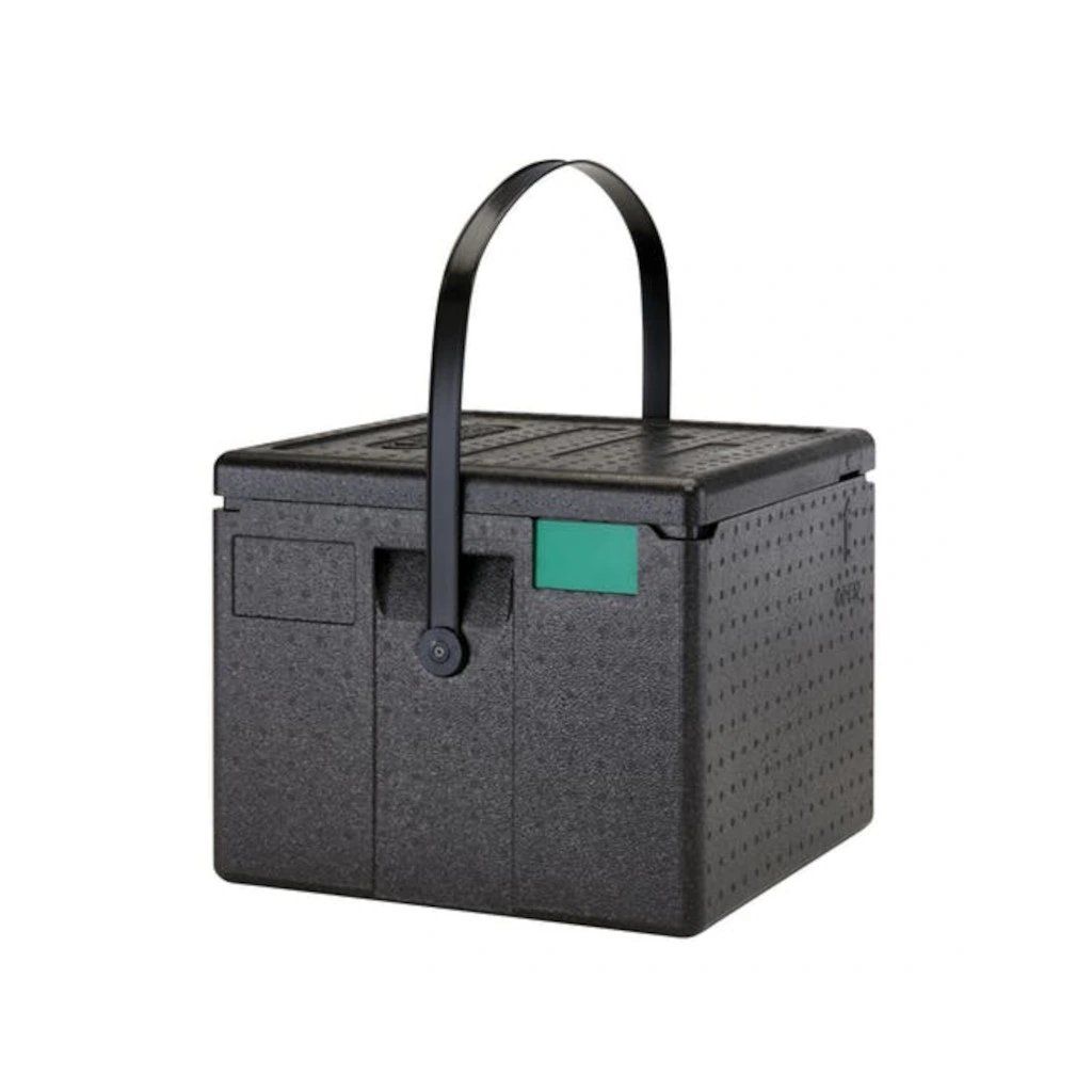 Termobox na pizzu renomovaného výrobce CAMBRO je jedním z nejlepších produktů pro přepravu pizzy na trhu. Boxy vynikají svou odolností, lehkostí a kromě vestavěných úchytů disponují také plastovým úchytem pro ještě jednodušší manipulaci. Díky důmyslné konstrukci boxu bude pizza jako čerstvě vytažená z pece – materiál zajistí udržení ideální teploty (4+ hodin), zatímco vestavěný větrací otvor uvolňuje páru a pizza zůstává teplá a křupavá. Termobox pojme až 4 pizzy o průměru 33 cm, je stohovatelný, odolný vůči mastnotě či chemikáliím a lze ho mýt v myčce nádobí.Termobox na pizzu s černým úchytem 4 ks (33 cm)