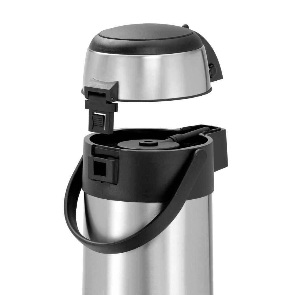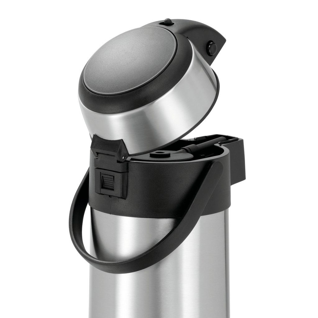 Dvouplášťový otočný termos s madlem na přenášení je praktickým řešením pro uchování až 3 litrů horkého nápoje. Pumpovací mechanismus usnadňuje dávkování a zvyšuje komfort při obsluze.