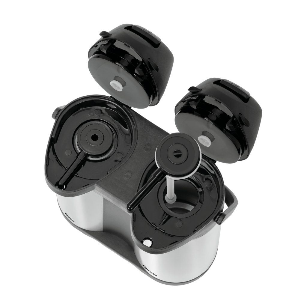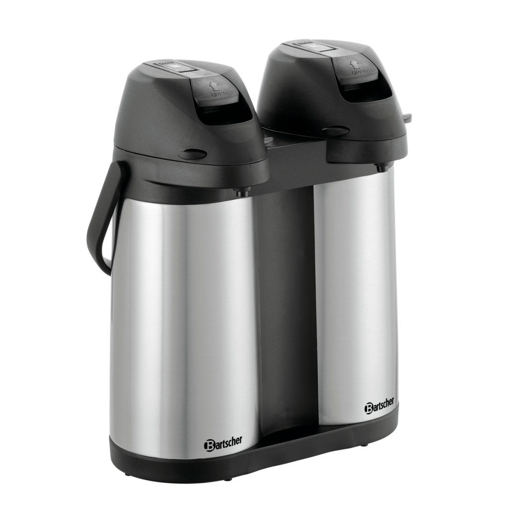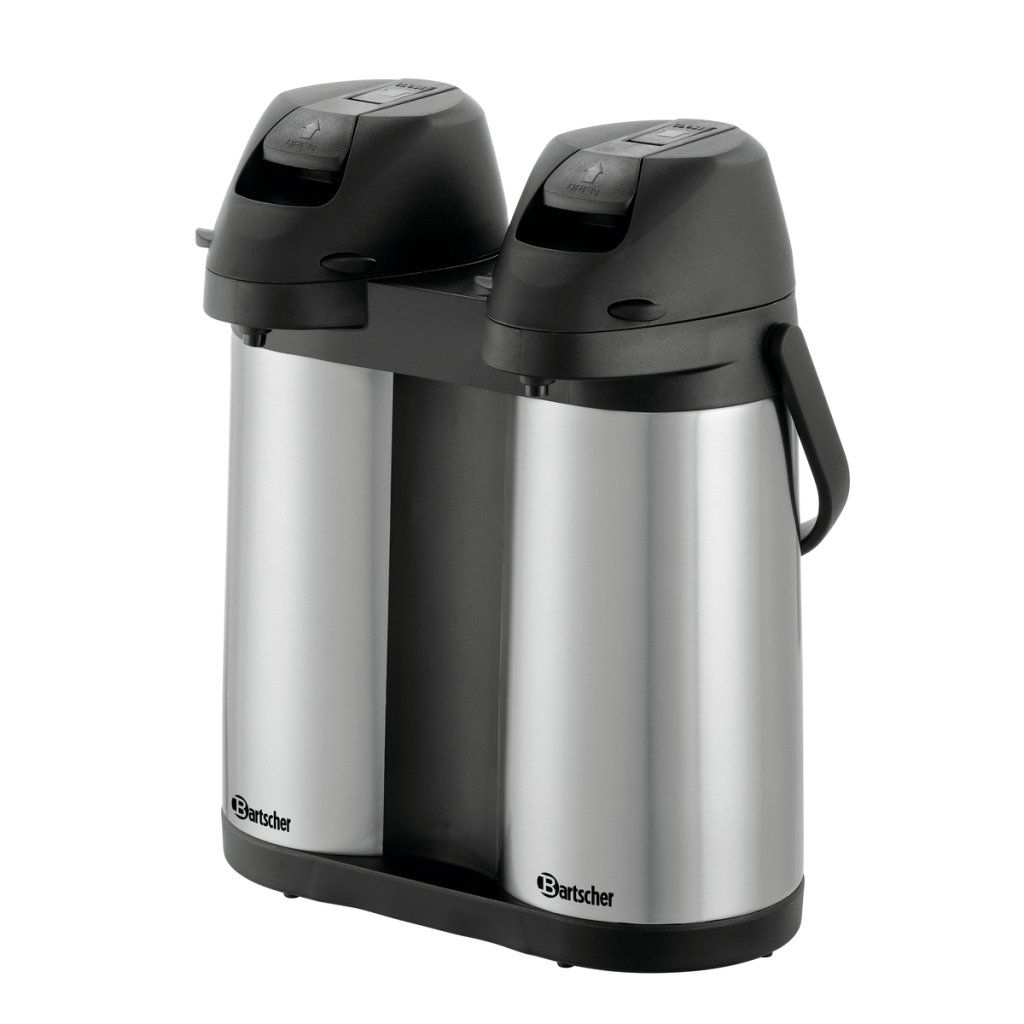 Dvakrát 1,9 litru pro horké nápoje ve dvojím provedení. Dvojitá termoska s pumpou umožňuje jednoduchý a rychlý výdej kávy, čaje i dalších teplých nápojů. Hodí se pro bufety, snídaňové provozy, catering i konferenční servis.