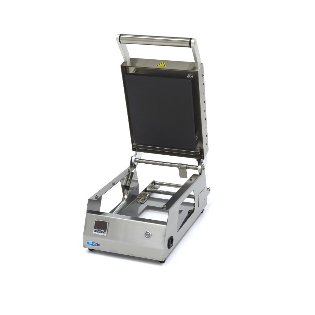 - Kompaktní poloautomatická svrchní svářečka tácků a nádob na jídlo