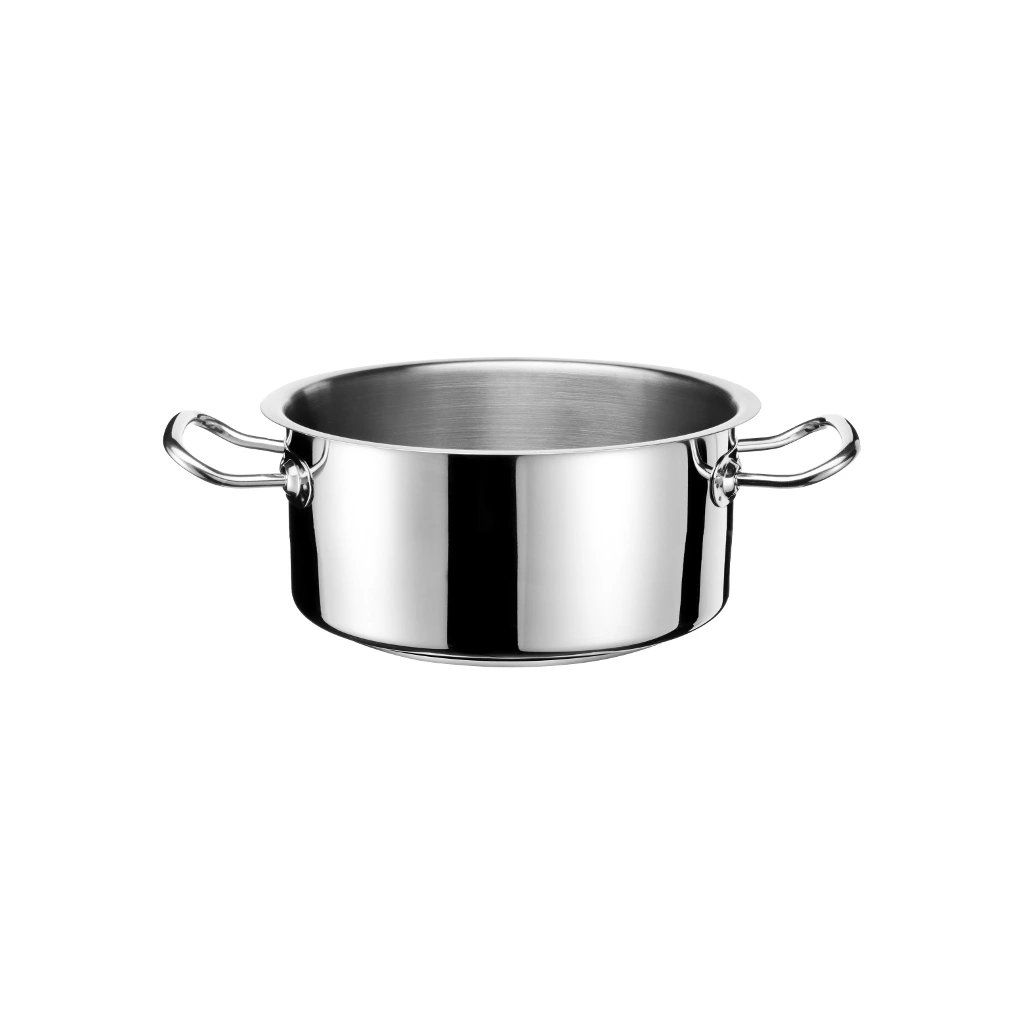 Nízký hrnec po záštitou značky Tomgast patří do inovované kolekce Exclusive. Září svou elegantností a chlubí se svou kvalitou. Vyrábí se z vysoce leštěné oceli, která je ideální do otevřených kuchyní. Navíc se jedná o výrobek z jednoho kusu nerezové oceli, se svařenými držadly a vícevrstvým dnem o tloušťce 7 mm s vynikající tepelnou vodivostí. Hladký povrch se snadno udržuje čistý.Hrnec nízký 2,5 l