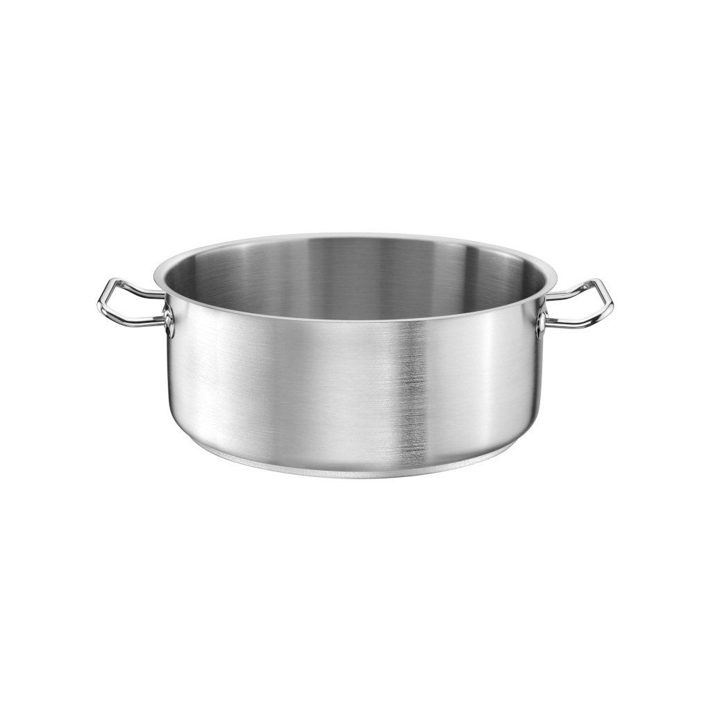 Neokapávající okraje, nenahřívající se úchyty, bez nýtů a sendvičové dno o síle 7 mm, to jsou slova, která skvěle vystihují Tomgast nízký kastrol. Svou praktičnost dokazuje také tím, že se hodí pro všechny typy sporáků, včetně těch indukčních.Kastrol nízký, nerez, 20 l, pr. 40 cm