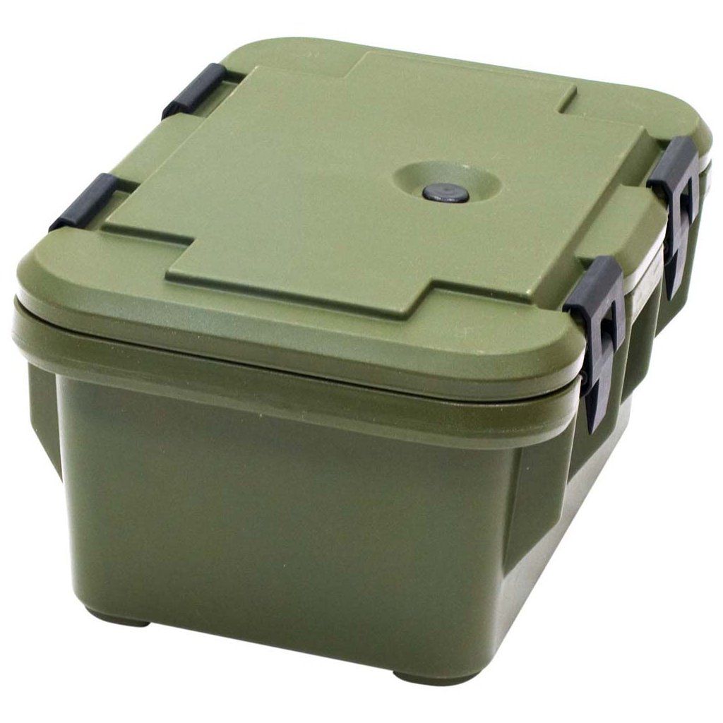 Transportní várnice s dvířky pro převoz nábob s teplými nebo studenými pokrmy, vyrobená z odolného polyetylénu s hrubou izolaci z polyuretanové pěny. Pro převoz pokrmů o teplotě do 93 stupňů Celsia v ocelových, polykarbonátových nebo polypropylénových nádobách GN. Je vybavená: víkem na 4 spony a odvzdušňovacím ventilem. Stohovatelná, barva khaki.Doplňkové parametry
