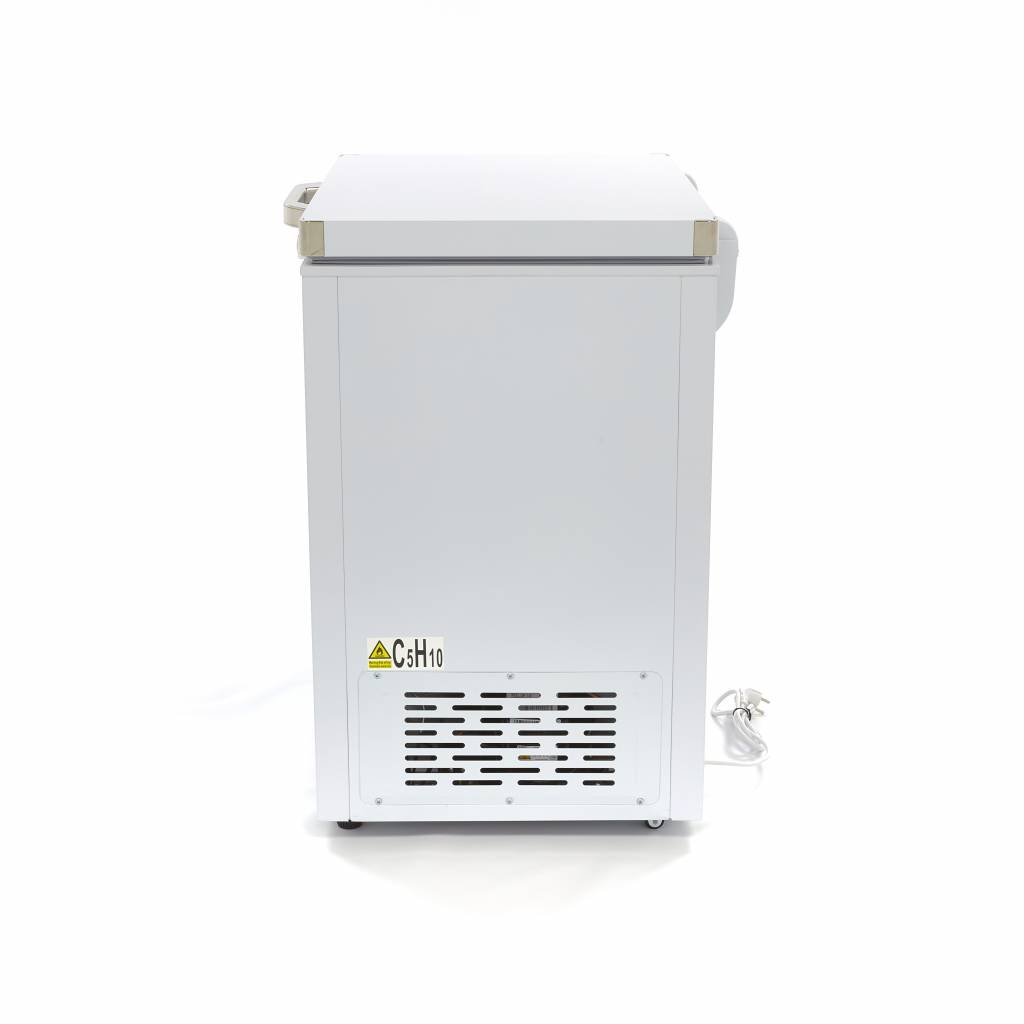 Kovové tělo této mrazničky má bílý povlak. Víko je opatřeno antibakteriálním těsněním, takže můžete své výrobky skladovat hygienicky. Pomocí snadno čitelného digitálního termostatu můžete nastavit teplotu v rozmezí od -14 do -24⁰C. Mrazničku lze používat při okolní teplotě mezi 3 a 38⁰C. Uvnitř mrazničky je vývod vlhkosti a chladicí systém s ventilátorem používá chladivo R600a, které neobsahuje freony.