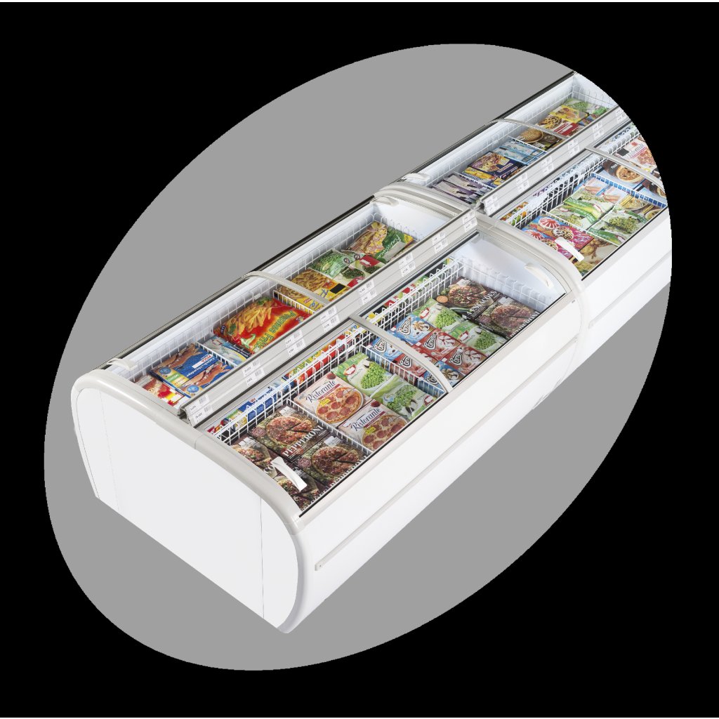 Mrazicí ostrov Série ostrovů TWIN, určené pro supermarkety, se vyznačují inovativním designem, který je ideální pro prodejny s omezeným prostorem. Jeden ostrov TWIN má stejný objem jako dvě standardní truhlicové mrazničky / chladničky stejné délky umístěné zády k sobě. Protože model TWIN zabírá méně podlahové plochy, je výsledkem více úložného prostoru na menší ploše. Má také skvělou funkci dvou chladicích systémů pro redundanci.Doplňkové parametry
