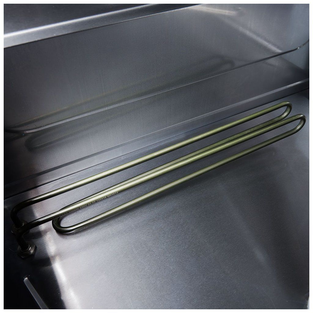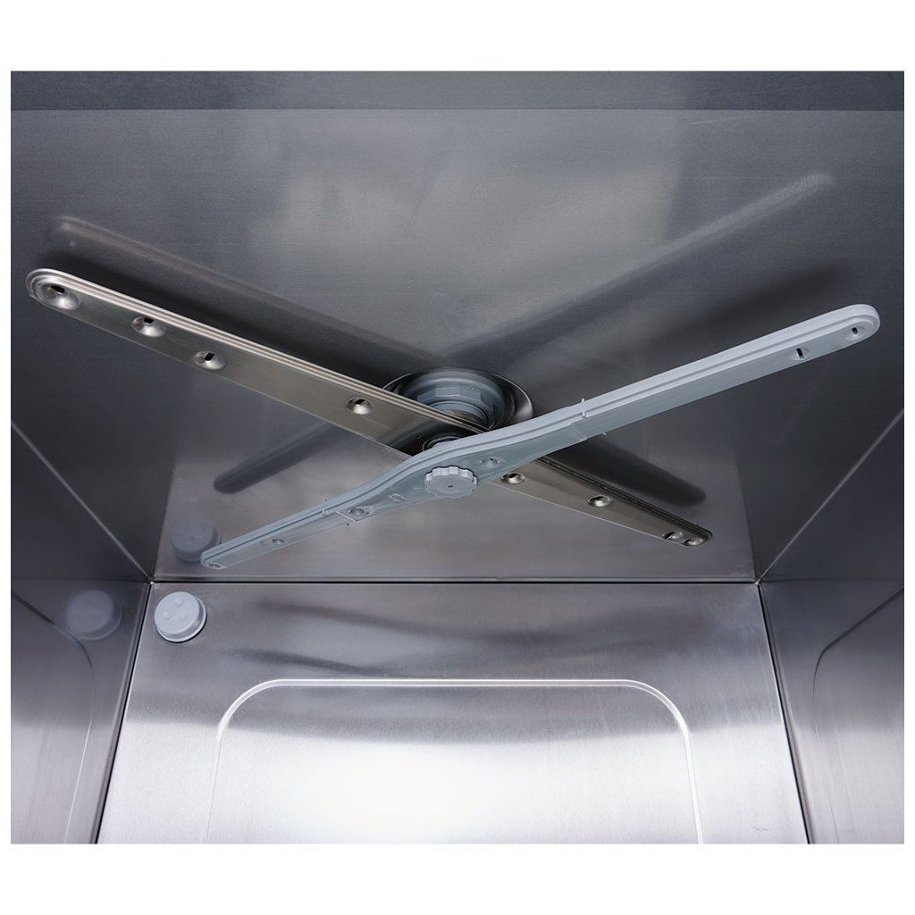Profesionální myčka s funkcí vypařování, dávkovače mycího a leštícího prostředku jsou součástis vypouštěcím a oplachovým čerpadlemelektromechanické ovládání, možnost montáže povrchového filtru 801990, přizpůsobená pro mytí táců GN 1/1, délka cyklu 120/180 sek., ukazatele pracovní teploty bojleru a komory, 2 páry mycích a oplachových ramen (vrchní a spodní strana), spotřeba vody 2,5 l/cyklus, maximální výška mytého náčiní 320 mm, koš 500x500 mm,koš na talíře, univerzální koš, koš na sklo a nádobka na příbory, zařízení má mít namontován změkčovač vody z důvodu ochrany proti usazování vodního kamene.Doplňkové parametry