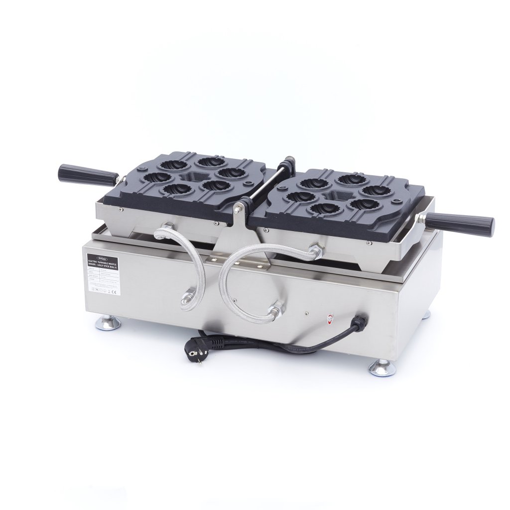 Tento elektrický vaflovač je vyroben v otočném modelu, takže můžete všechny cak pops otočit najednou, aniž byste je museli vyndávat z plechu. Tím je zajištěno, že se těsto může na obou stranách zavinout, takže cake pops mají vždy z obou stran dokonalý kulatý tvar. Přístroj pevně stojí na čtyřech nerezových nožkách, takže při otáčení zůstává stabilní. Pečicí plech má speciální výřez pro tyčinku. Díky tomu můžete tyčinku jedním tahem umístit na správné místo a bude vždy rovně a uprostřed dortu. Nechte ji několik minut zapéct a vaše dorty na špejli jsou připraveny ke zdobení například čokoládou.