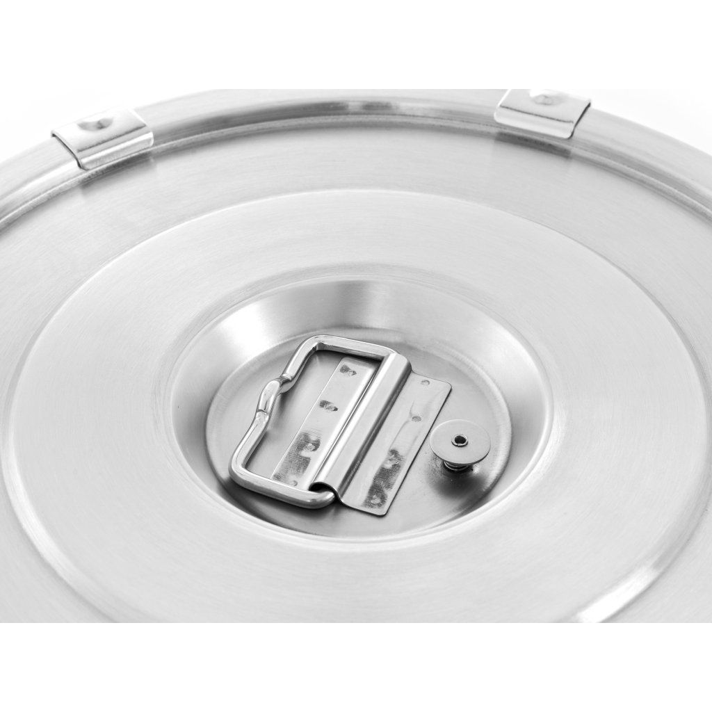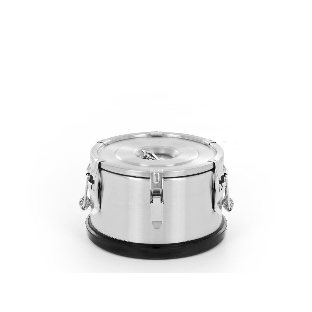 Várnice z nerezové oceli a s kohoutkem • Várnice je ideální pro přepravu horkých jídel a tekutin.• Díky své speciální konstrukci - pěna s vynikajícími izolačními vlastnostmi, dvojité stěny z nerezové oceli - je schopna udržet teplo až 8 hodin.• Vnitřní stěna z oceli AISI 443, která má velmi dobrou odolnost vůči korozi, vnější stěna z oceli AISI 201• Má odvzdušňovací ventil pro vyrovnání tlaku• Víko se silikonovým těsněním, které zvyšuje těsnost várnice a brání úniku tekutin• 6 západkových uzávěrů zaručuje pevné utěsnění• Plastová základna stabilizuje termosku a zabraňuje jejímu volnému klouzání po povrchu a také ji chrání před náhodným poškozením • Ergonomické rukojeti s vícebodovým svařováním pro pohodlnou a bezpečnou manipulaci• Úchyt víka pro zvedání víka (nepoužívejte ke zvedání várnice)• Vnitřní rozměry 300x170 mm (průměr x výška)Obrázek na fotografii. Skutečný výrobek se může nepatrně lišit.Doplňkové parametry