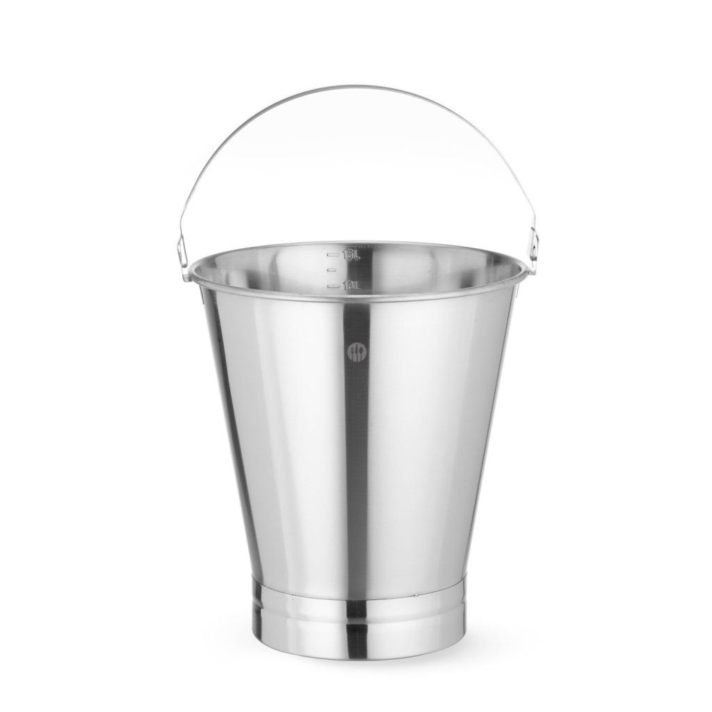Vědro s prstencem je vyrobené z nerezové oceli. Vnitřní odměrka. Zpevněný podstavec zajišťuje stabilitu a hygienické použití.Doplňkové parametry