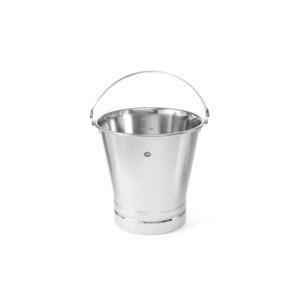 Vědro s prstencem je vyrobené z nerezové oceli. Vnitřní odměrka. Zpevněný podstavec zajišťuje stabilitu a hygienické použití.Doplňkové parametry