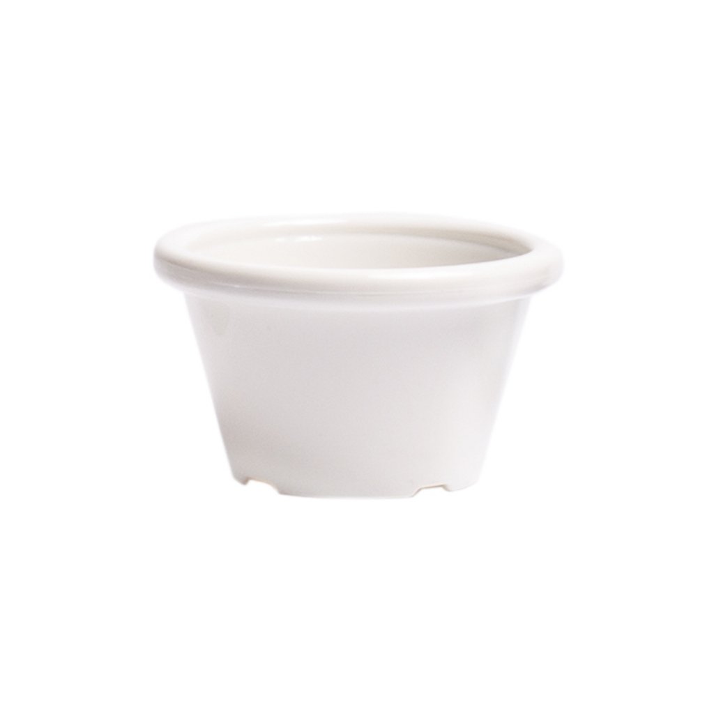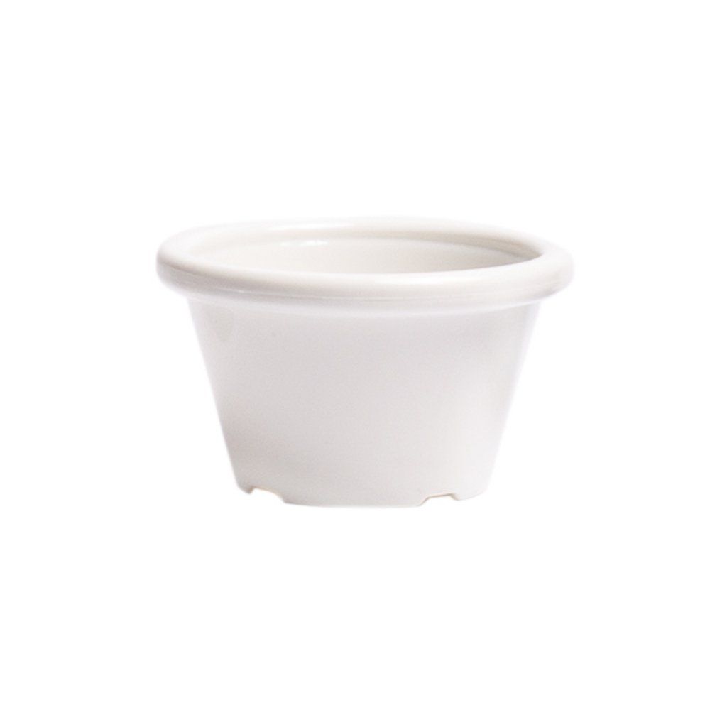 Malý jednorázový ramekin o objemu 60 ml se hodí k podávání marmelád, džemů či omáček a dipů. Vyrábí se z PET plastu. Ideální také na servírování předkrm§ pro jednu osobu nebo fingerfood.Ramekin pr. 6 cm, bílý