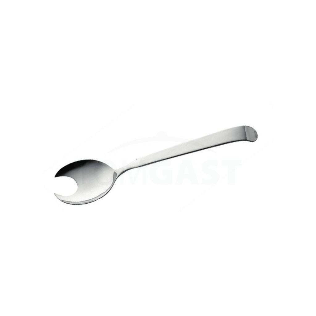 Naservírujte si svou porci salátu vkusně a jednoduše s touto vidličkou určenou přímo pro servírování salátů. Nemá žádné viditelné spoje. Ergonomicky tvarovaná rukojeť usnadňuje manipulaci. Vyrábí se z vysoce leštěné nerezové oceli 18/10 a lze ji umývat v myčce nádobí.Vidlička na salát 28 cm