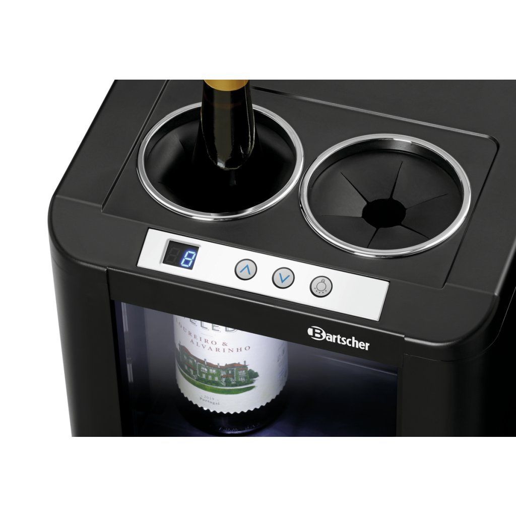 Vinotéka je určena pro prezentaci a chlazení vína v dávkovači vína. Díky integrovanému LED osvětlení lze stylově vystavit 2 lahve bílého, růžového nebo červeného vína na bufetu, v restauraci, u baru nebo při degustacích. Je ideální volbou tam, kde je důležitá správná teplota i reprezentativní vzhled servírování.