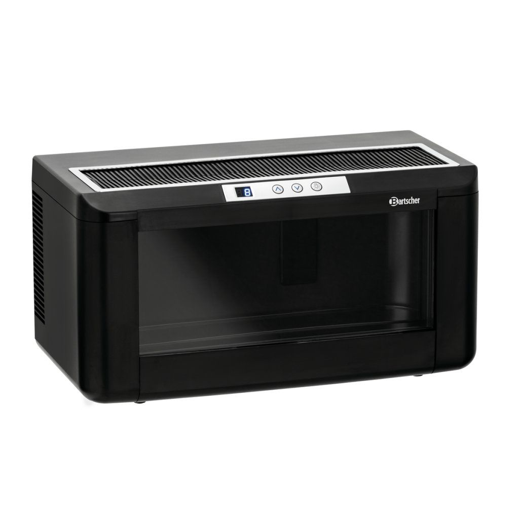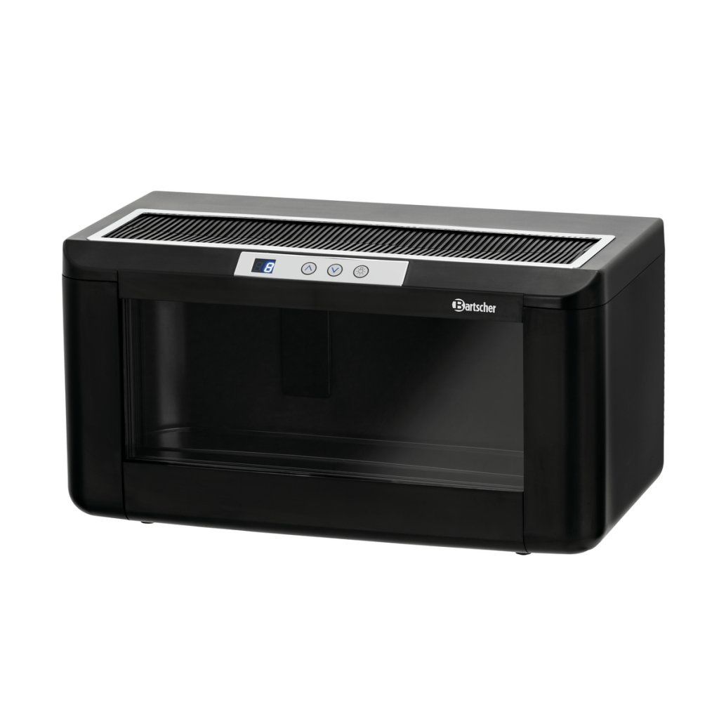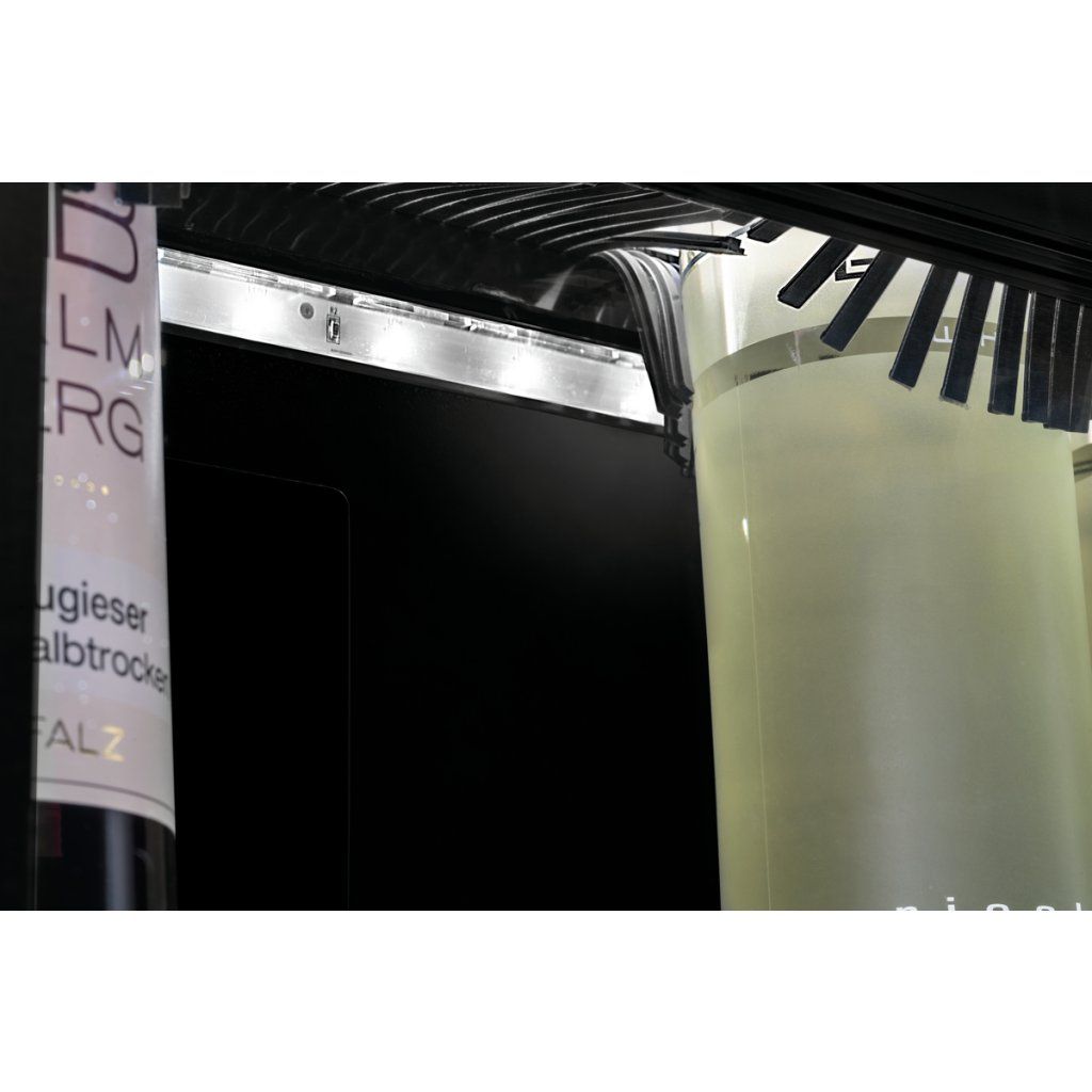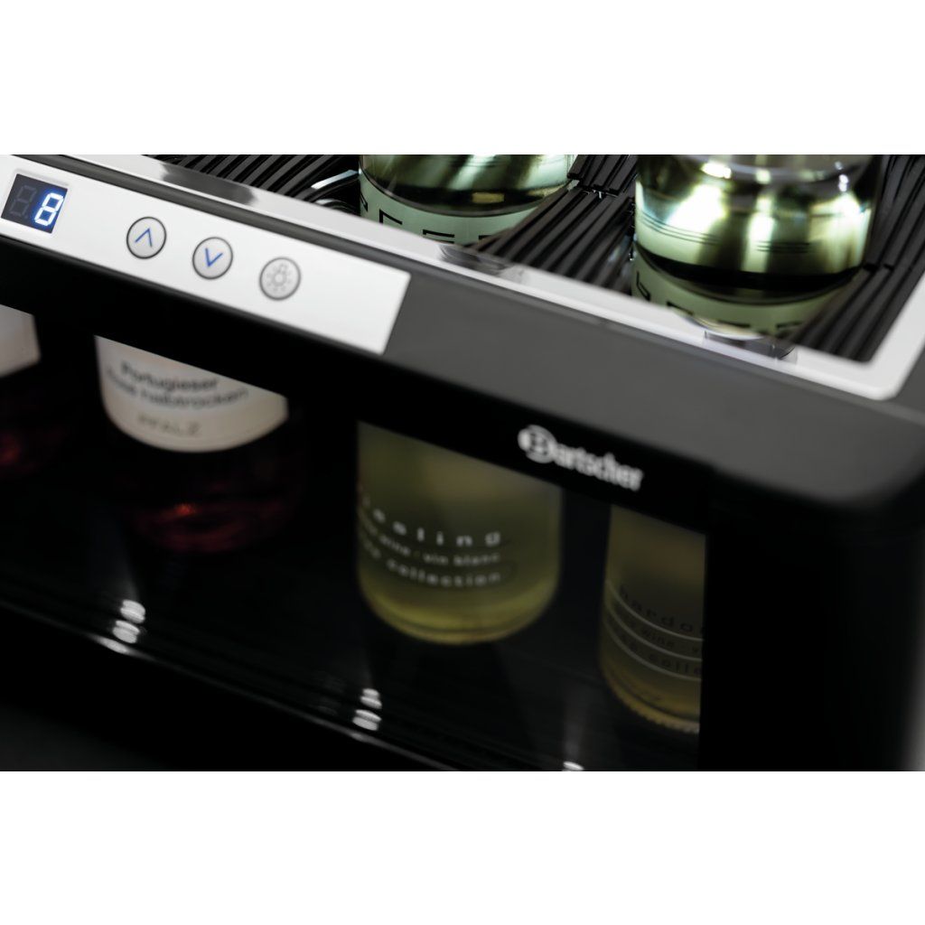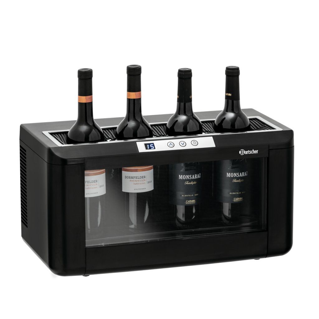 Vinotéka s LED osvětlením nabízí prostor pro 4 až 5 lahví vína. V teplotní zóně lze bez problémů chladit také šampaňské a lahve typu Bordeaux. Díky modernímu designu je ideální do restaurací, barů i bufetů.