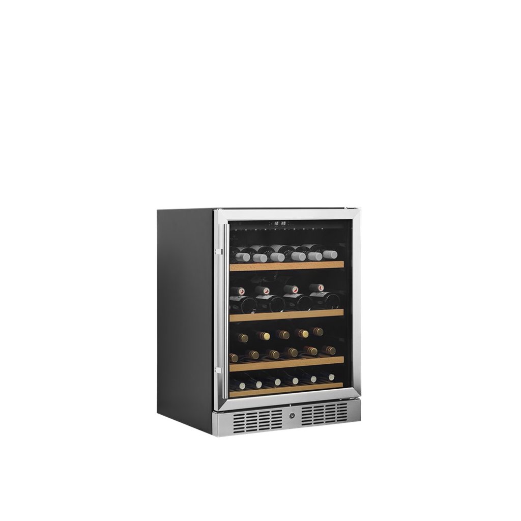 Vinotéka z nerezové oceliVinotéky řady TFW-S s prvky z nerezové oceli nabízejí moderní řešení pro vystavování a skladování lahví s vínem. Mají elegantní design s nerezovým rámem dveří a spodním čelním panelem, černými vnějšími boky a černým interiérem, jemné LED osvětlení a výsuvné dřevěné police. Vinotéka je vybavena moderním chladicím systémem. Agregát disponuje nízkou hlučností a nízkou spotřebou elektrické energie.Doplňkové parametry