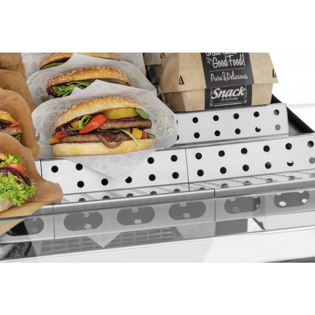Skvělý pomocník do špičkového provozu ve snack barech a výdejních místech. Díky vitríně pro udržování teploty zůstávají připravené snacky teplé a snadno dostupné pro rychlý prodej.