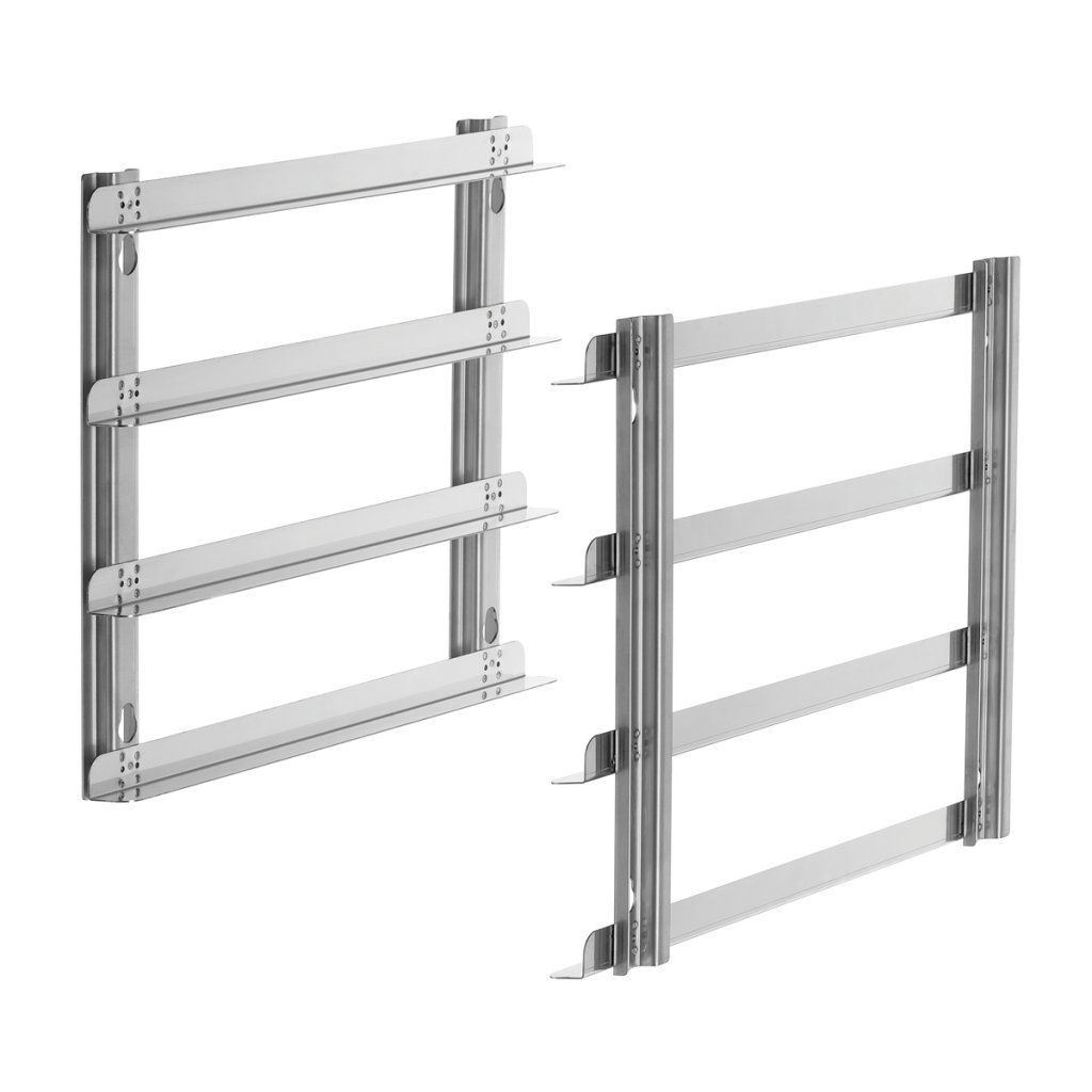 Pár vodicích lišt je ideálním řešením pro přípravu pečiva v konvektomatech Silversteam2 5 x 1/1 GN. Umožňuje použití roštů a plechů v pekařském formátu 600 x 400 mm a nabízí velkou výšku zasunutí 90 mm pro pohodlnou manipulaci.