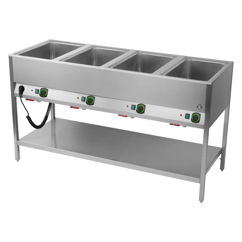 Sap kód: 00000085; Šířka netto [mm]: 1566; Hloubka netto [mm]: 598; Výška netto [mm]: 905; Hmotnost netto [kg]: 68.00; Šířka brutto [mm]: 730; Hloubka brutto [mm]: 1700; Výška brutto [mm]: 1010; Hmotnost brutto [kg]: 70.00; Typ spotřebiče: Elektrické zařízení; Konstruční typ zařízení: Stacionární; Příkon elektrický [kW]: 2.800; Napájení: 230 V / 1N - 50 Hz; Stupeň krytí ovládacích prvků: IPX4; Vnější barva zařízení: Nerezové; Materiál: AISI 304 vrchní deska, AISI 430 opláštění; Maximální teplota zařízení [°C]: 90; Minimální teplota zařízení [°C]: 30; Výpusť: Ano; Počet GN / EN zařízení: 4; Velikost GN / EN zařízení [mm]: GN 1/1; Hloubka GN zařízení [mm]: 200; Průřez vodičů CU [mm²]: 0,75; Typ vlastností zařízení: Vyhřívané;Buďte první, kdo napíše příspěvek k této položce.