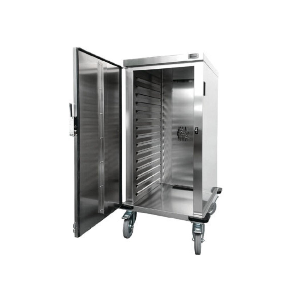- rozměr: 775×945×1510 mm- dvouplášťové, izolované provedení, vyrobený z chromniklové oceli 18/10- rozteč lisovaných vsunů 75 mm (umožňuje snadné čištění)- digitální termostat s regulací teploty +30 °C až +90 °C- aktivní ohřev - ventilátor a topné těleso na vnitřní zadní stěně vozíku- dno vozíku tvořeno vaničkou pro zachycení kondenzátu- madlo pro transport na zadní straně vozíku- el. šňůra s vidlicí a odkládací zásuvka na zadní straně vozíku- 4 × kolečko otočné pr. 160 mm, z toho 2 × s brzdou- uzavírání: klika se zámkem- rohové nárazníky - na bocích vozíku - vedle dveří - zapuštěná madla pro snadnější manipulaci s vozíkem- jednokřídelné uzamykatelné dveře s těsněním - aretace otevřených dveří - napájení vozíku: 230 V~50 Hz- počet zásuvů: 15- příkon: 1,8 kW- hmotnost (kg): 106- kapacita:15 x GN 2/1-65 nebo 30 x GN 1/1-65 nebo 5 x GN 2/1-200 nebo 10 x GN 1/1-200 nebo 7 x GN 2/1-100 (nebo 150) + 1 x GN 2/1-65 nebo 14 x GN 1/1-100 (nebo 150) + 2 x GN 1/1-65Upozornění:Vozík doporučujeme zabalit do kartonu a na paletu pro jeho bezbečnější doručení přepravní službou. Cenu za balení Vám sdělí pracovníci odbytu.Buďte první, kdo napíše příspěvek k této položce.