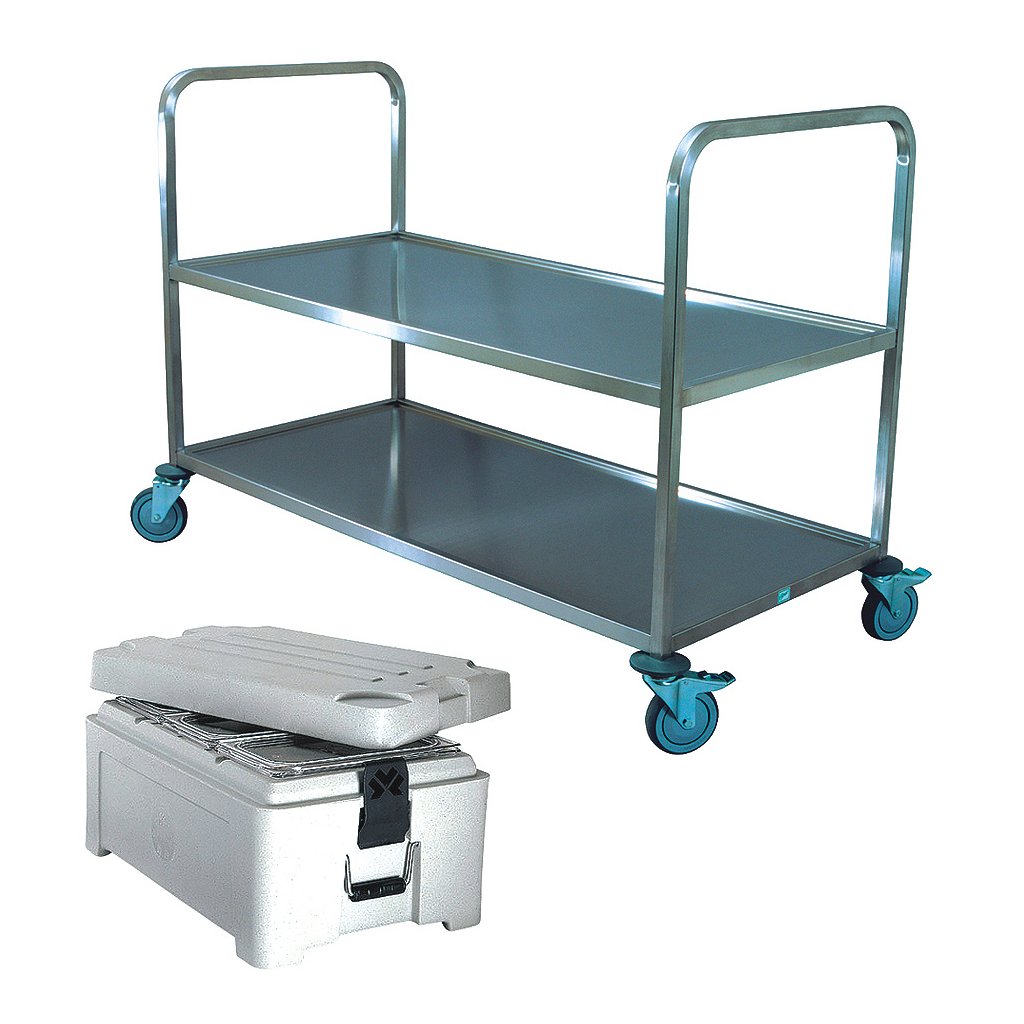Manipulační vozíky na termoporty MVV se dvěma policemi jsou vyrobeny z chromniklové oceli 18/10.Kolečka: prům. 125mm, 4 otočná z toho 2 s brzdouRozměry (mm): 970×720×1000Rozměry pracovní plošiny (mm): 845x595Kapacita: 4 x AP 200Nosnost vozíku (kg): 150Nosnost police (kg) max.: 80 Hmotnost (kg): 21Buďte první, kdo napíše příspěvek k této položce.