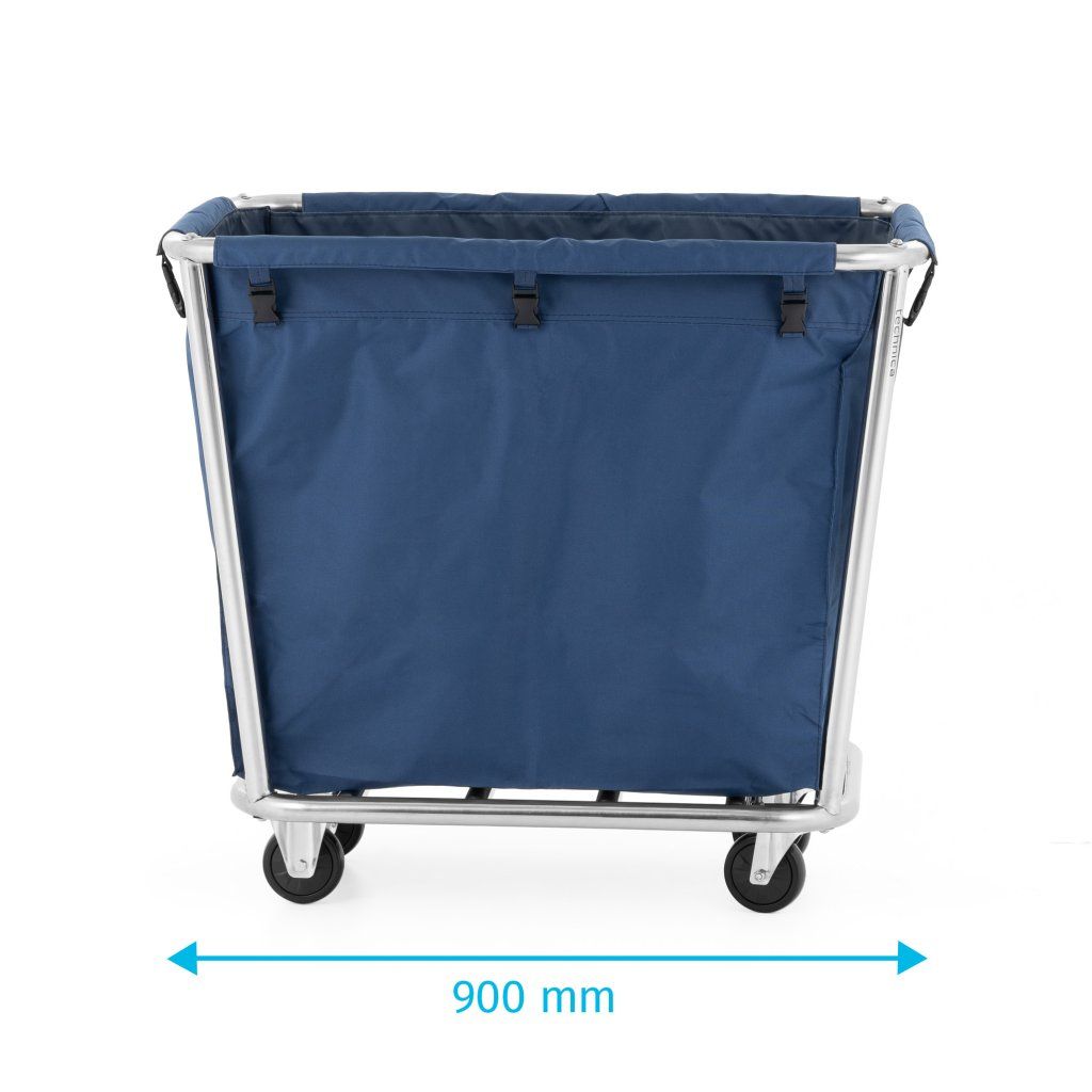 Vyrobeno z nerezové oceli s modrým odnímatelným sáčkem na prádlo. Dvě ze čtyř kol vozíku jsou otočná. Ideální pro přepravu prádla.Doplňkové parametry