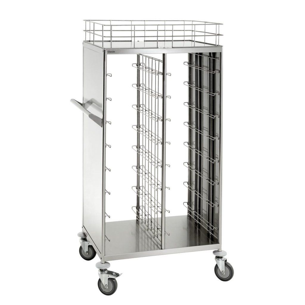 vozík na tace TT1600 je spolehlivé řešení pro profesionální gastronomii. Vozík s univerzálním využitím, vybavený 16 páry kolejnic – vhodný pro přepravu naplněných nádob 1/1 GN nebo pro odvoz táců ve standardním formátu pro jídelny.