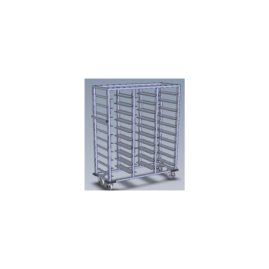 Transportní etážový vozík typu NET - 3/30 MM - na tablety vyrobený z chromniklové oceli 18/10.Slouží zejména k transportu a skladování nádobí v koších, tabletů a jejich částí, popř. jídel v GN. Rozměry (mm): 1330×480×1695Rozměry tabletu (mm): 395x300Kolečka prům. 125 mm: 2 pevná a 2 otočná, z toho 1otočné s brzdouKapacita tabletů (ks): 30 tabletů Menü MobilHmotnost (kg): 45Nosnost jednotlivých lišt/ polí (kg): 20Buďte první, kdo napíše příspěvek k této položce.