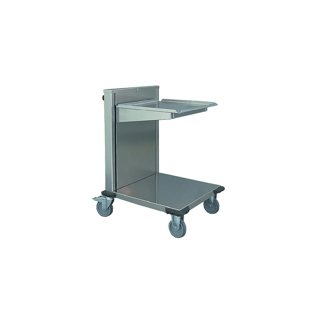 Nerezový vozík vyrobený z chromniklové oceli 18/10 pro přepravu a podávání košů o rozměru 530×650×115(75) mm.4 kolečka o prům. 125 mm: 2 se směrovou brzdou a 2 otočná s brzdou.Pracovní deska se pod hmotností košů posouvá po svislé konzole směrem dolů.Závěsné pružiny udržují vrchní koš v pracovní poloze.Při odebírání košů se pracovní deska posune automaticky vzhůru do optimální polohy.Rozměry (mm): 685x995x900Rozměry pr. desky (mm) DxE: 535x655Kapacita (ks): 6-9Hmotnost (kg): 50Nosnost (kg) max: 150Buďte první, kdo napíše příspěvek k této položce.