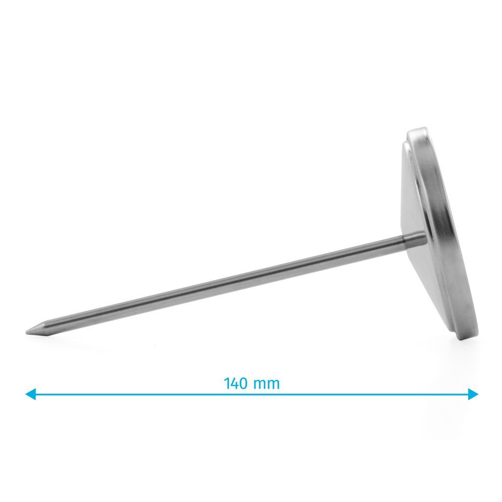 • Odolný teploměr ideální pro pečení různých druhů masa, který vydrží použití při teplotách od -50 ℃ do 300 ℃• Speciální stupnice přesně ukazuje ideální teplotu pro hotovou drůbež, vepřové, telecí, jehněčí a hovězí maso.• Teploměr je celý vyroben z nerezové oceli 18/0 ( stupnice) a 18/8 (sonda), kryt stupnice je ze žáruvzdorného skla• Nejvyšší přesnost měření se dosáhne zasunutím sondy do výrobku 0,5 cm až 1 cm co nejblíže k případné kosti.• Sonda: Φ3,8 mm x 127 mm• Přesnost: ± 2 °CDoplňkové parametry