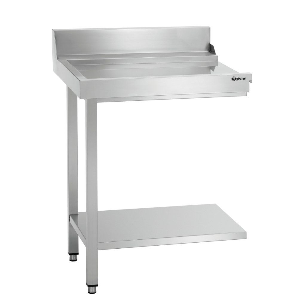 Vyprazdňovací stůl o šířce 70 cm je určen k montáži na levou stranu průtokových myček DS značky Bartscher. Podstavec nabízí prostor pro koše myčky.