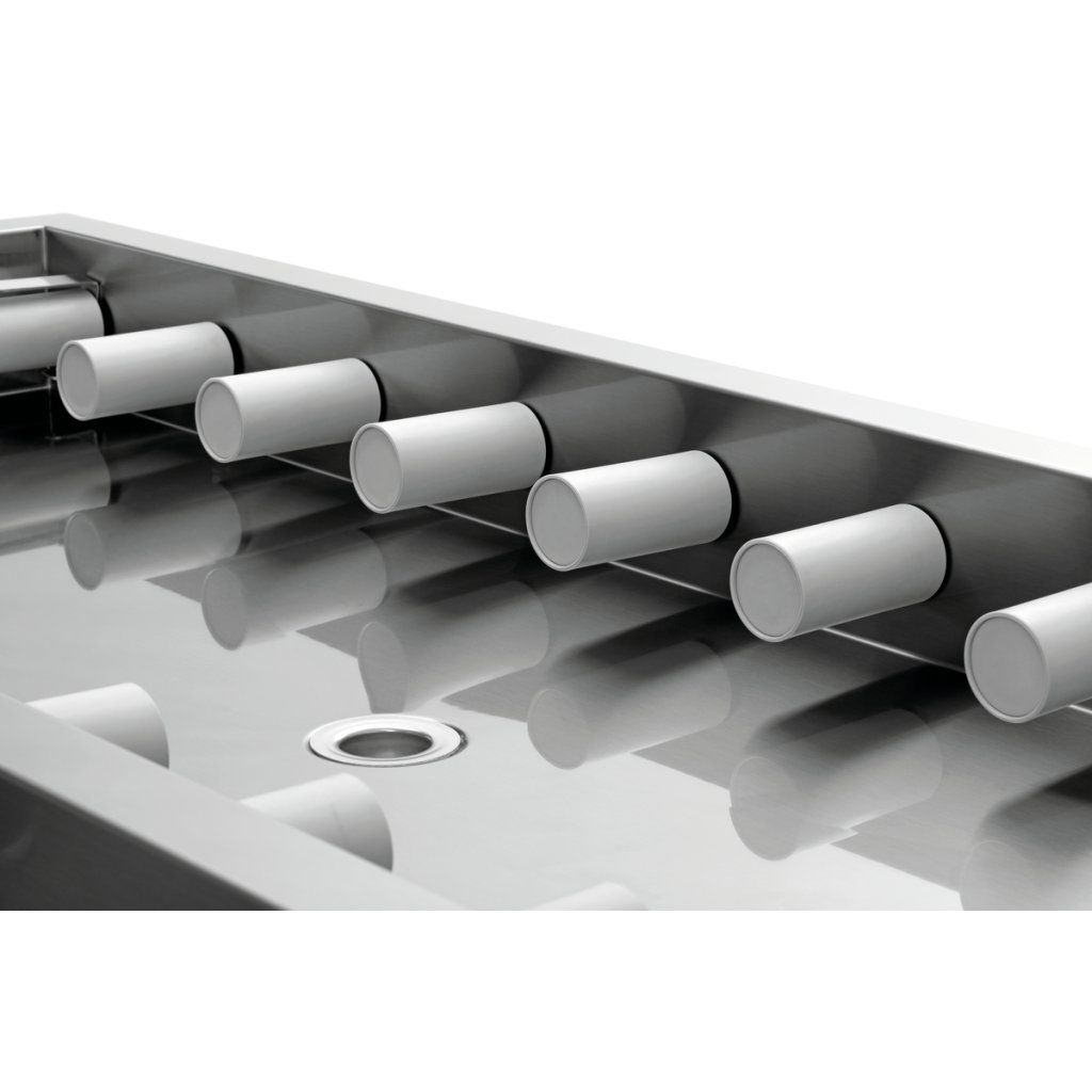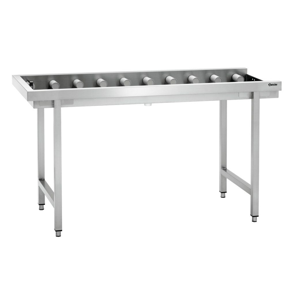 Vykládací stůl s transportními válečky je ideálním doplňkem k myčce s košovým transportem KTS5000. Dvacet transportních válečků zajišťuje plynulý pohyb košů a bezproblémový provoz i při vyšším zatížení.